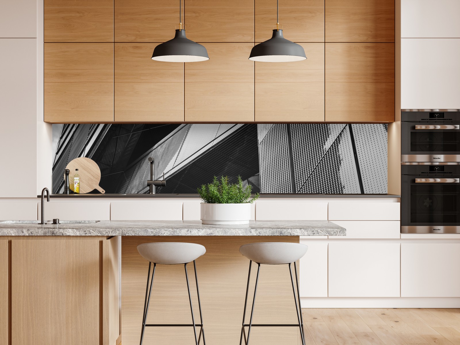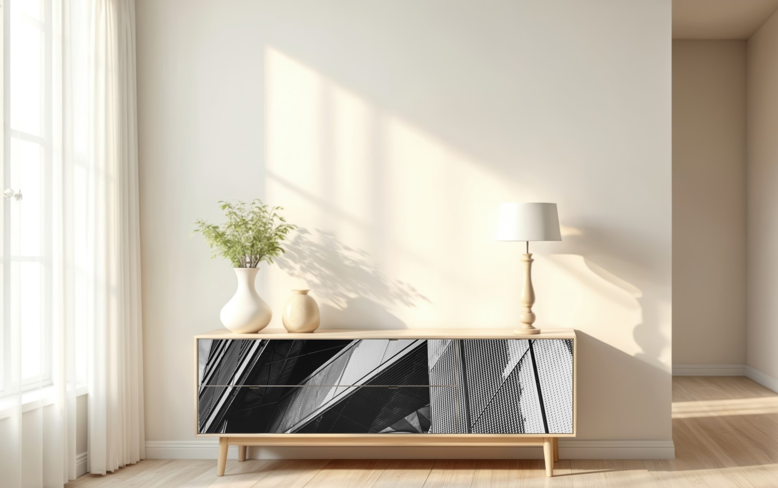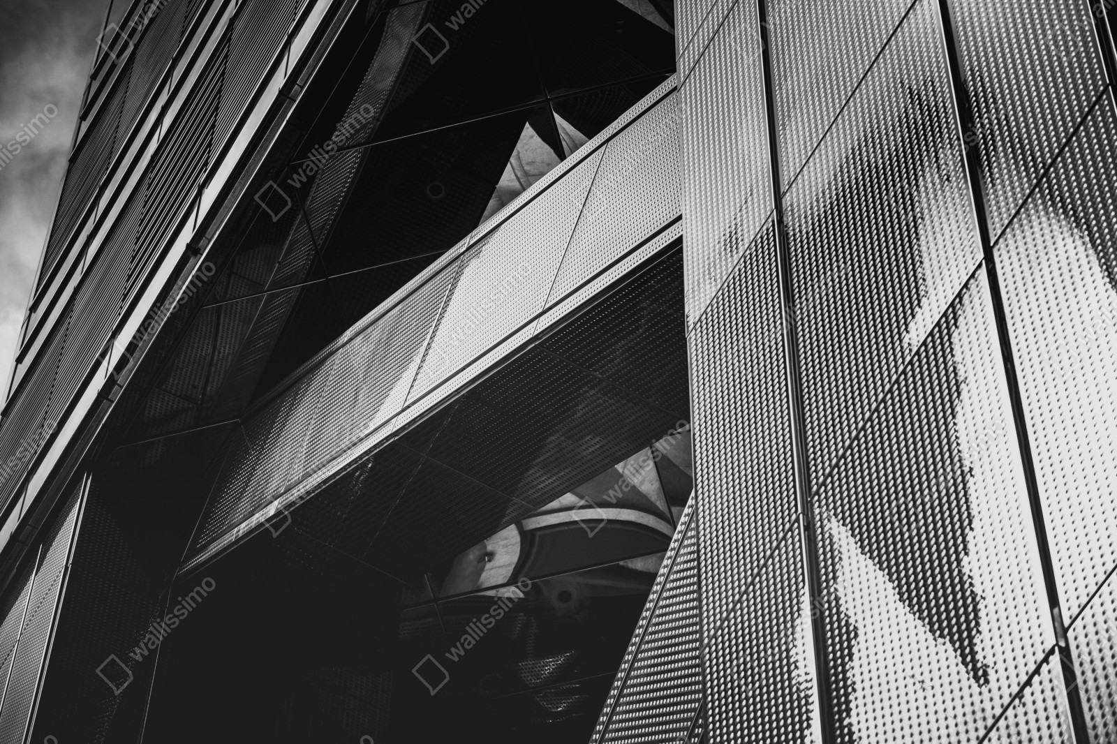 Repositionierbarer Aufkleber Geometrische moderne fassade in schwarzweiß