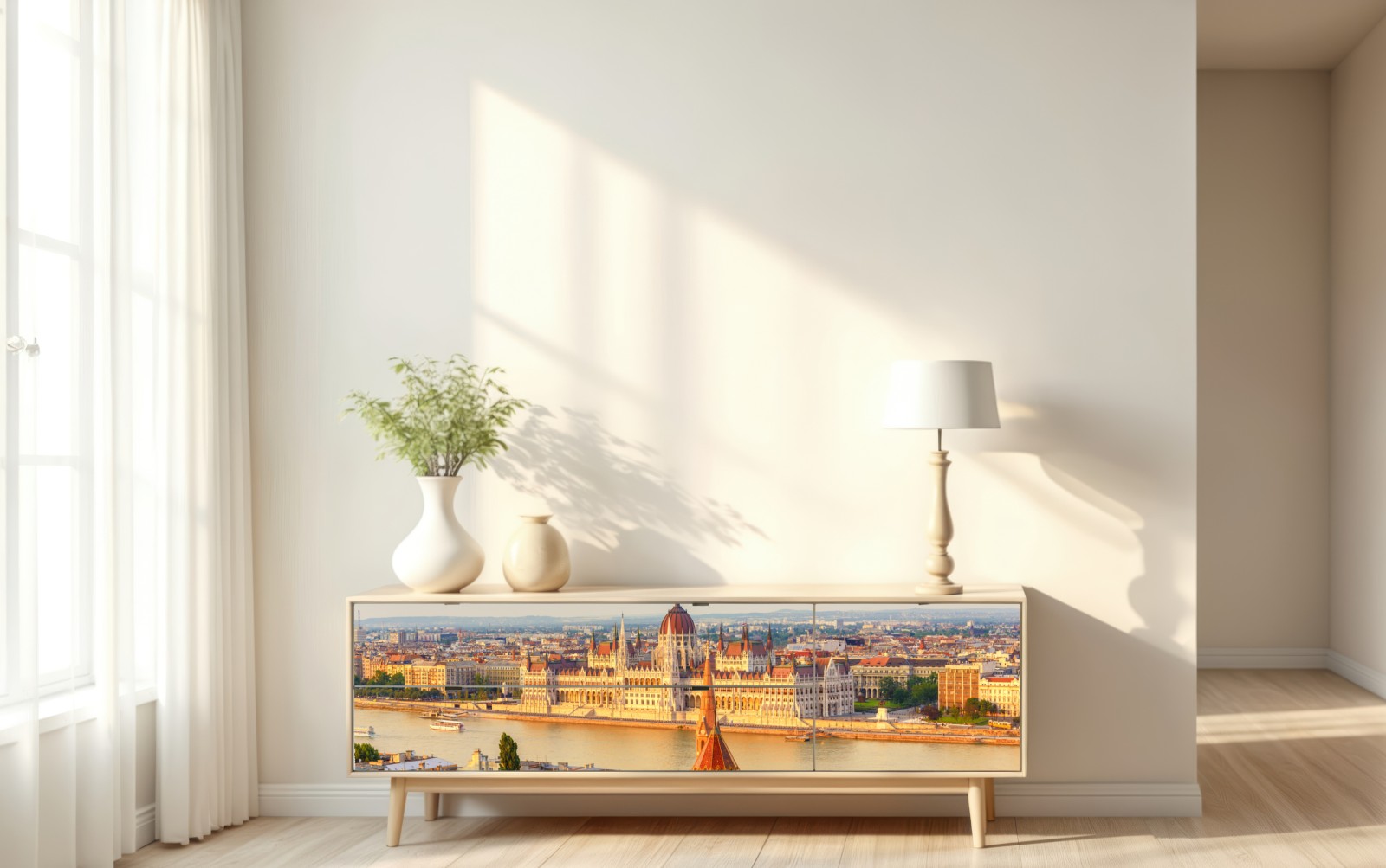 Repositionierbarer Aufkleber Budapest skyline mit dem ungarischen Parlament am Donauufer