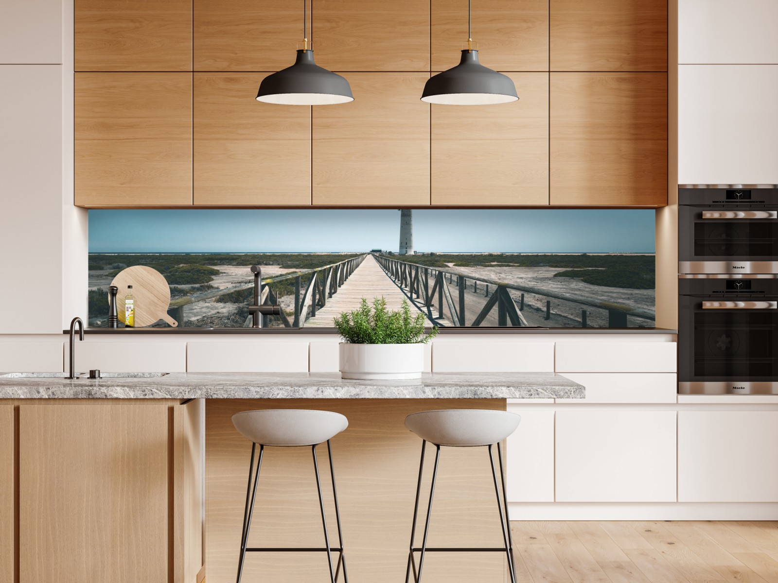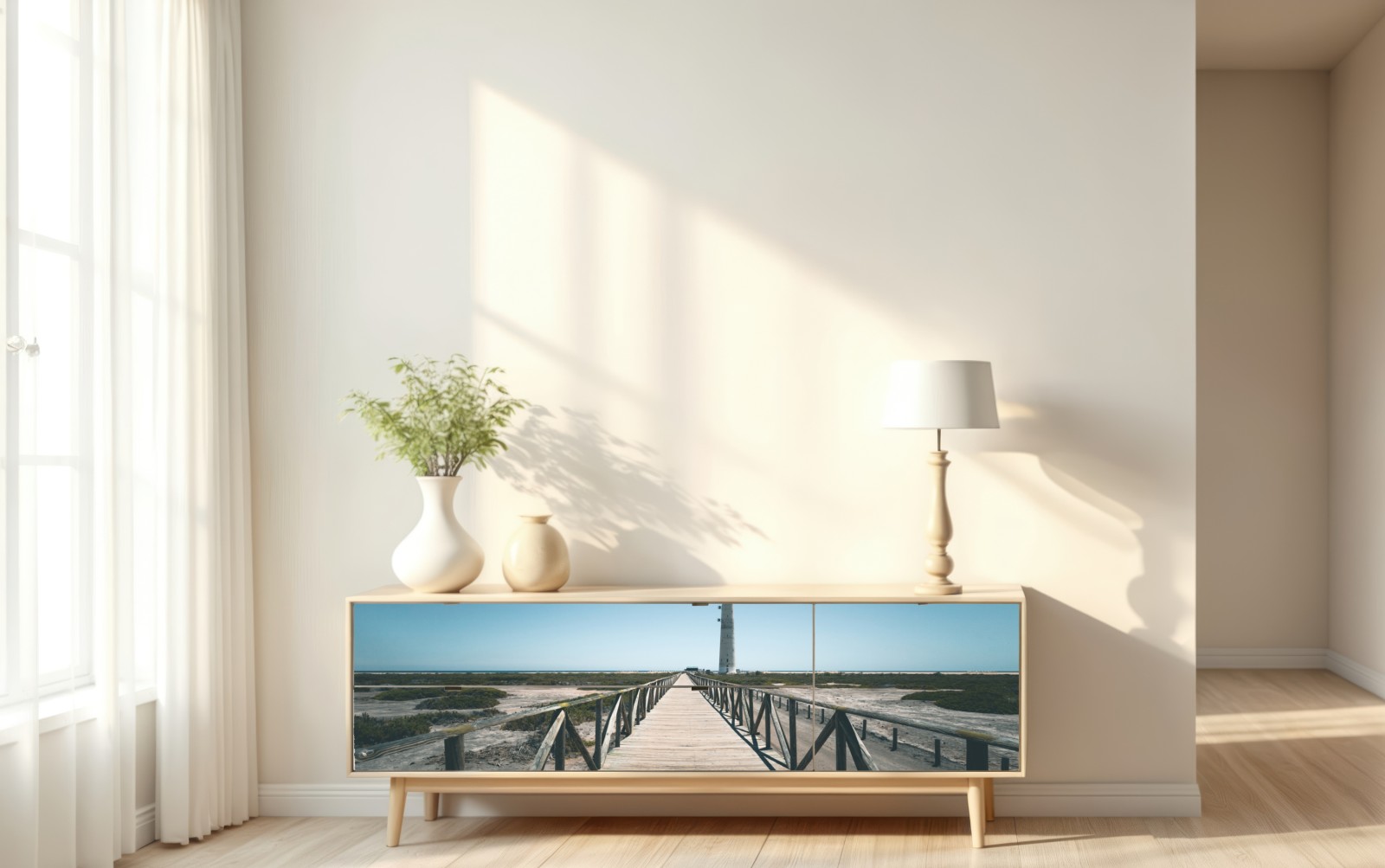 Repositionierbarer Aufkleber Leuchtturm am ende des stegs
