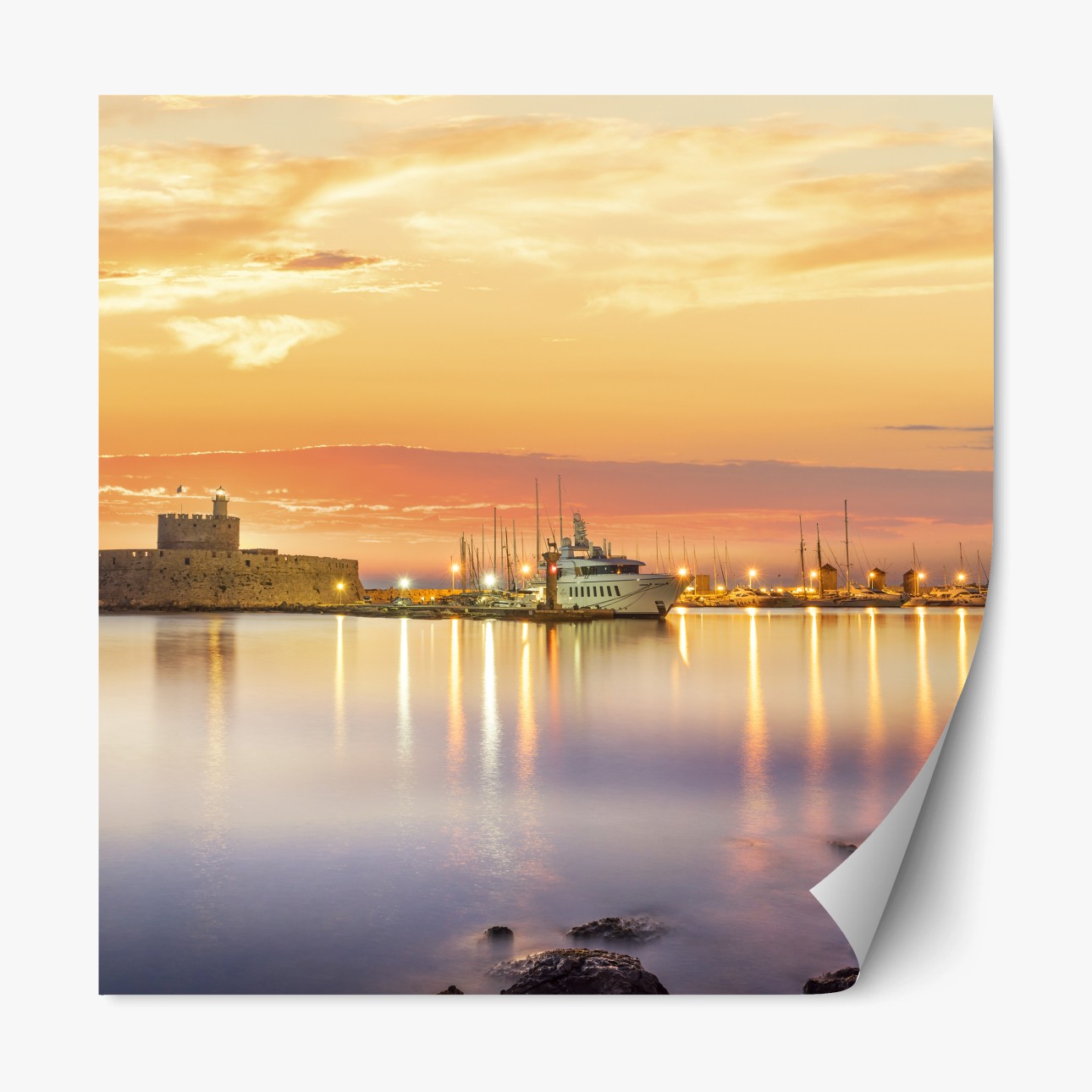 Repositionierbarer Aufkleber Festung Agios Nikolaos im Hafen Mandraki, Rhodos