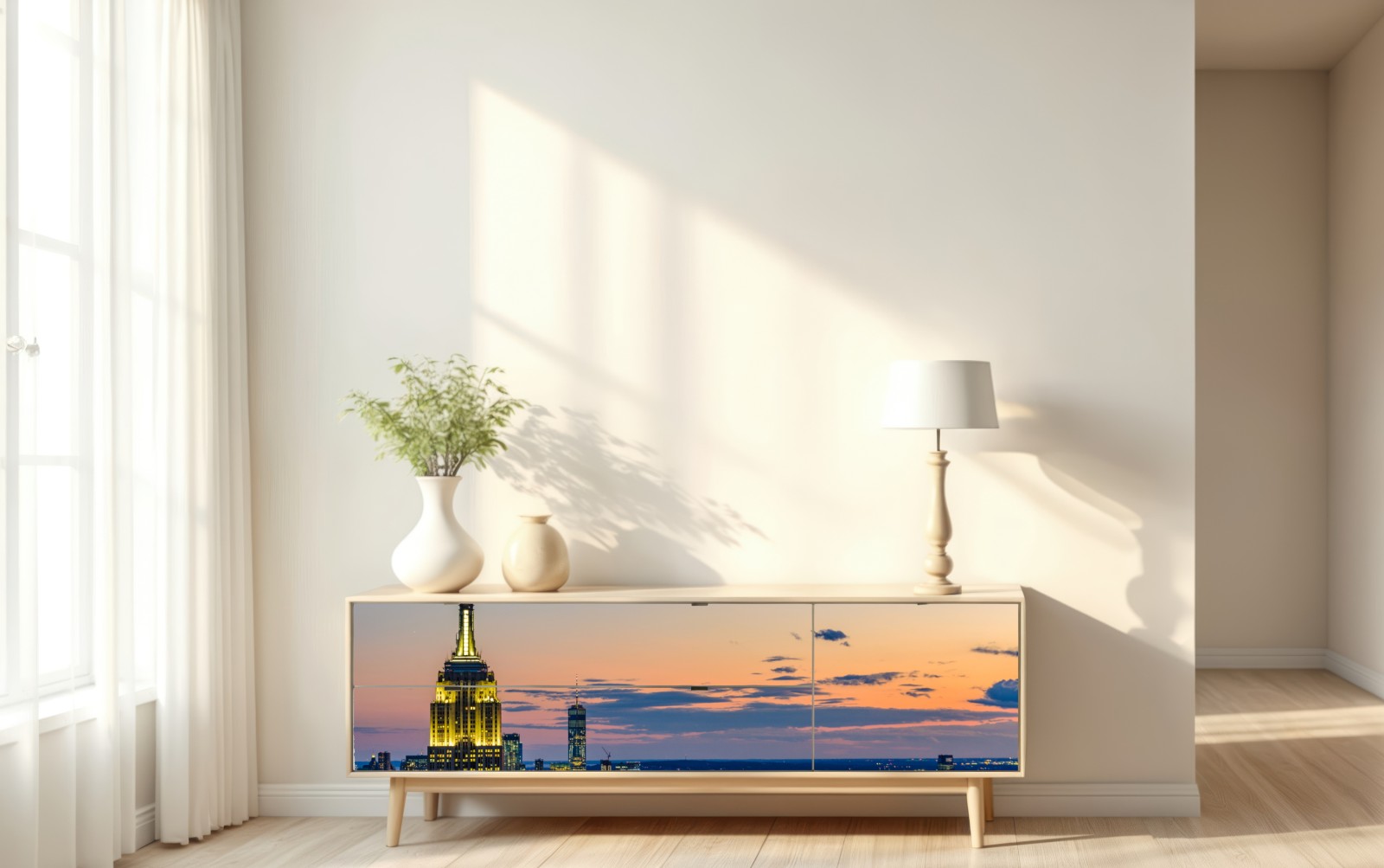 Repositionierbarer Aufkleber New York skyline bei dämmerung