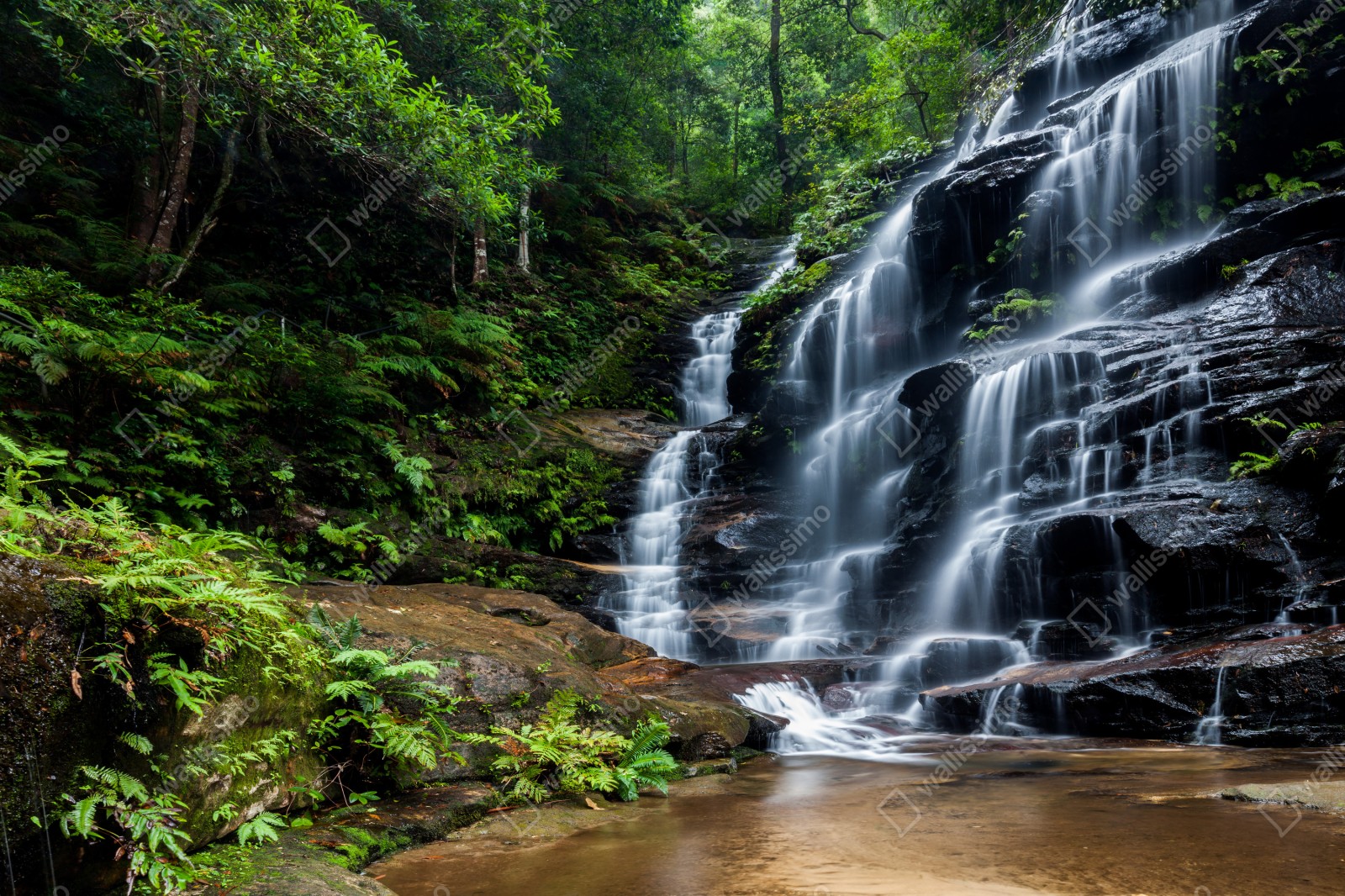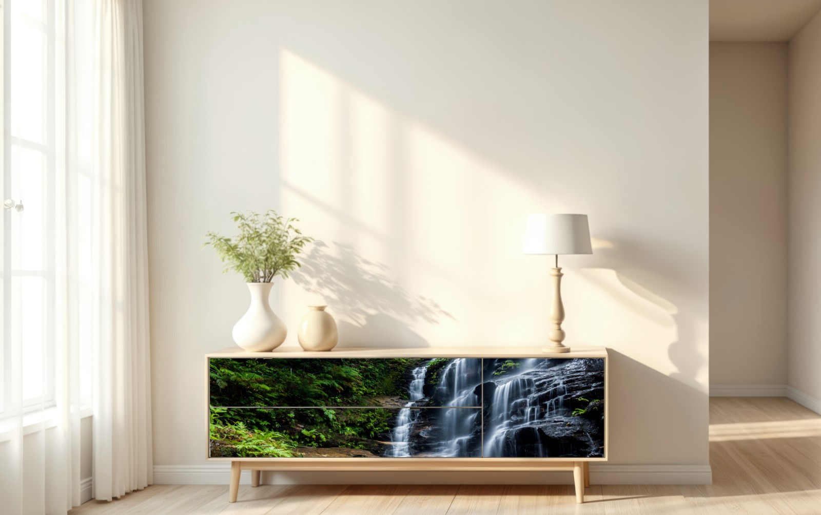 Repositionierbarer Aufkleber Ruhiger wasserfall im wald