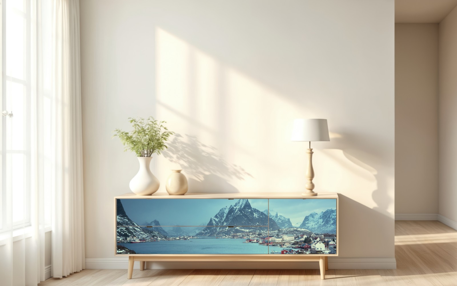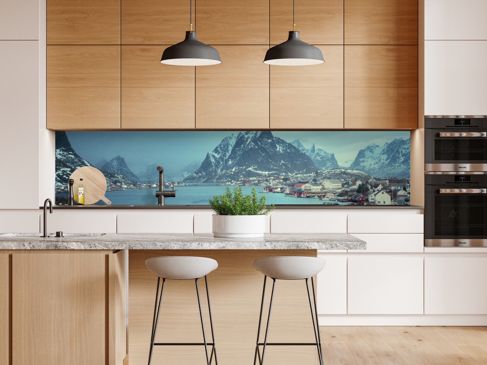 Repositionierbarer Aufkleber Reine winterlicher fjord in den Lofoten