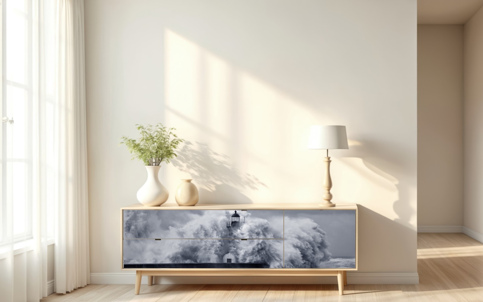 Repositionierbarer Aufkleber Leuchtturm von mächtigen wellen umgeben