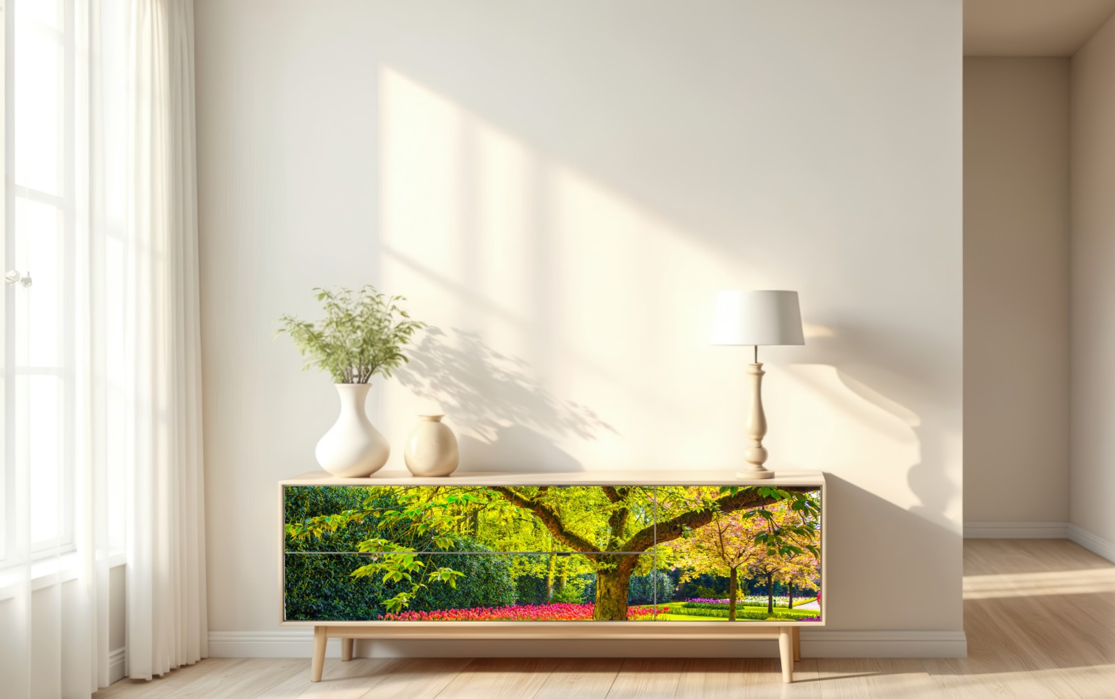 Repositionierbarer Aufkleber Bunter tulpengarten in Keukenhof