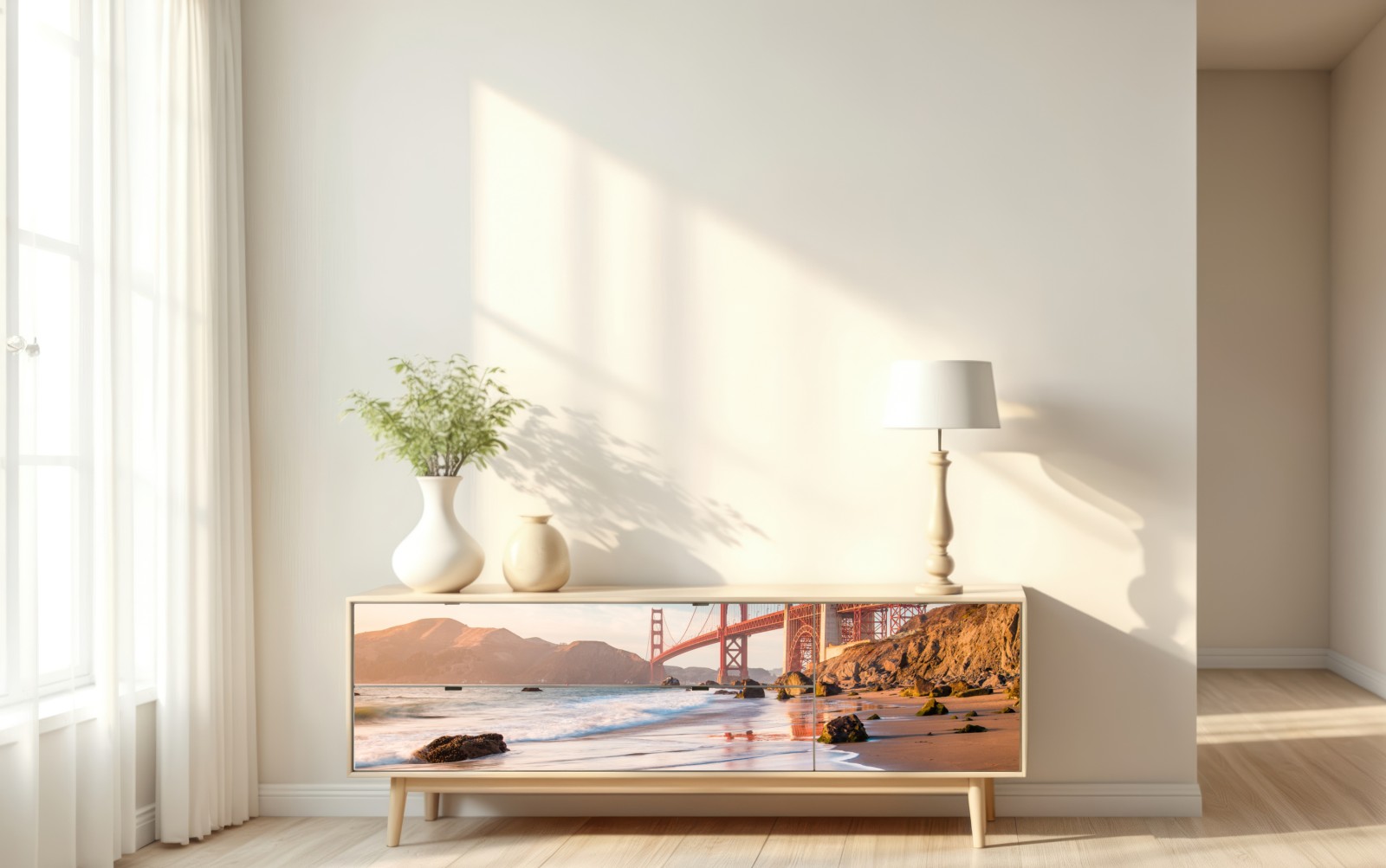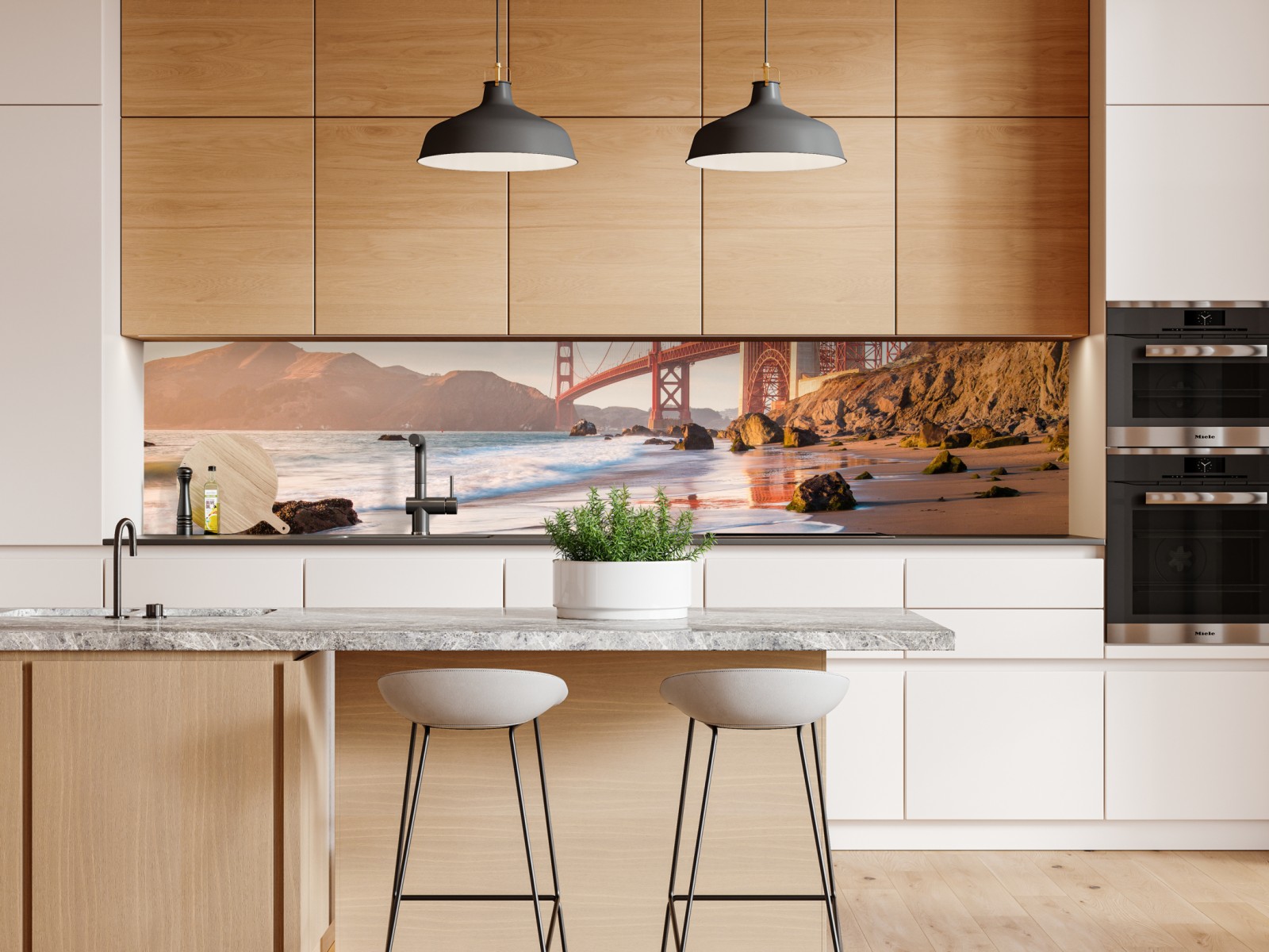Repositionierbarer Aufkleber San Francisco Golden Gate Bridge bei sonnenuntergang