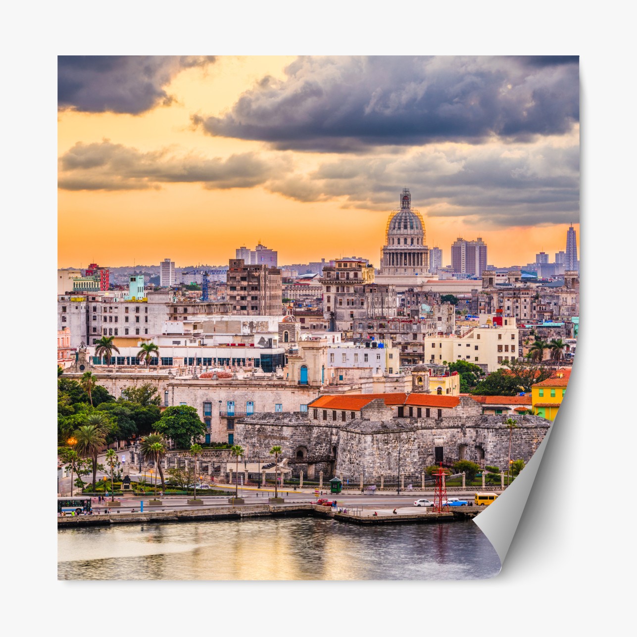 Repositionierbarer Aufkleber Havanna skyline bei sonnenuntergang