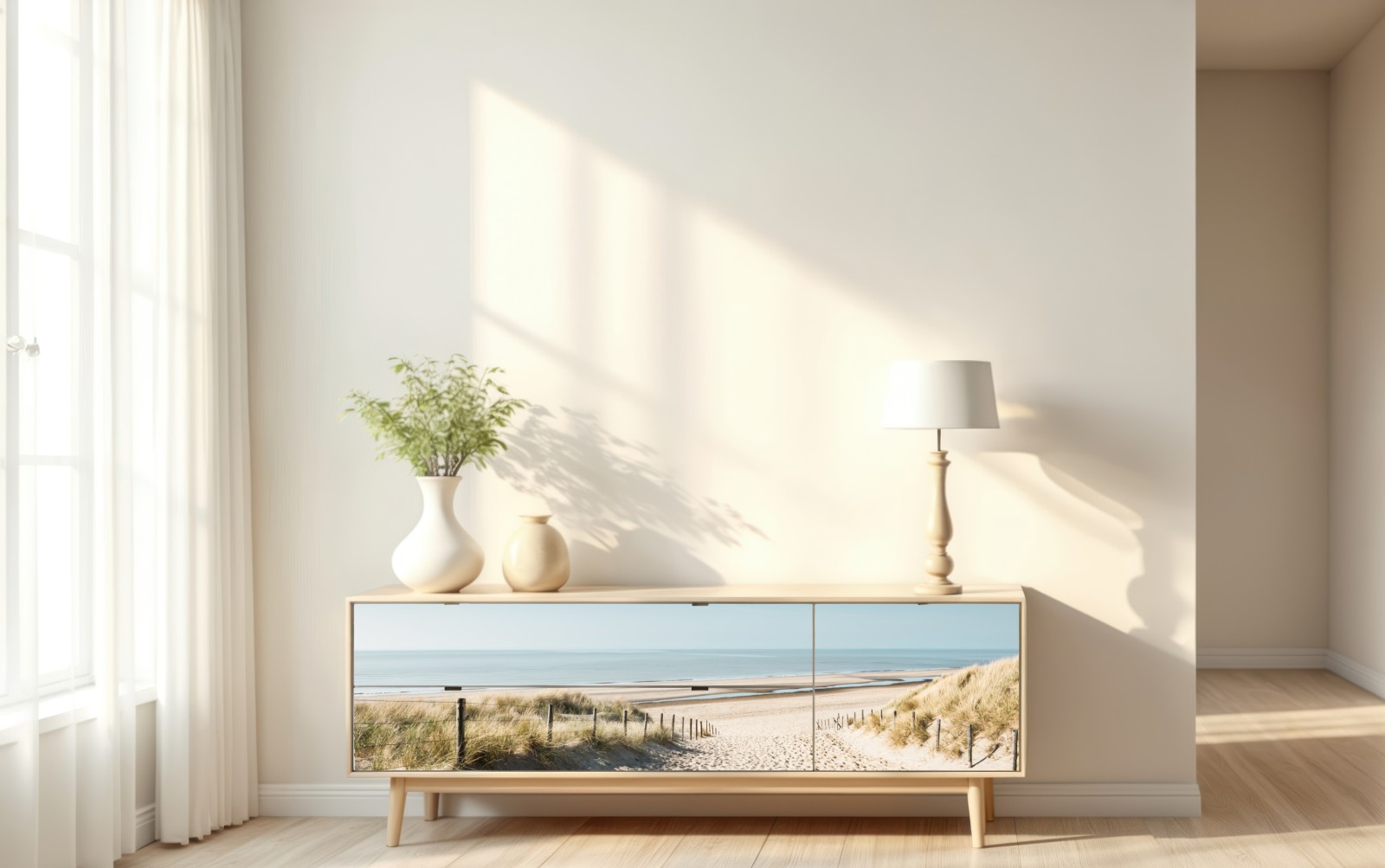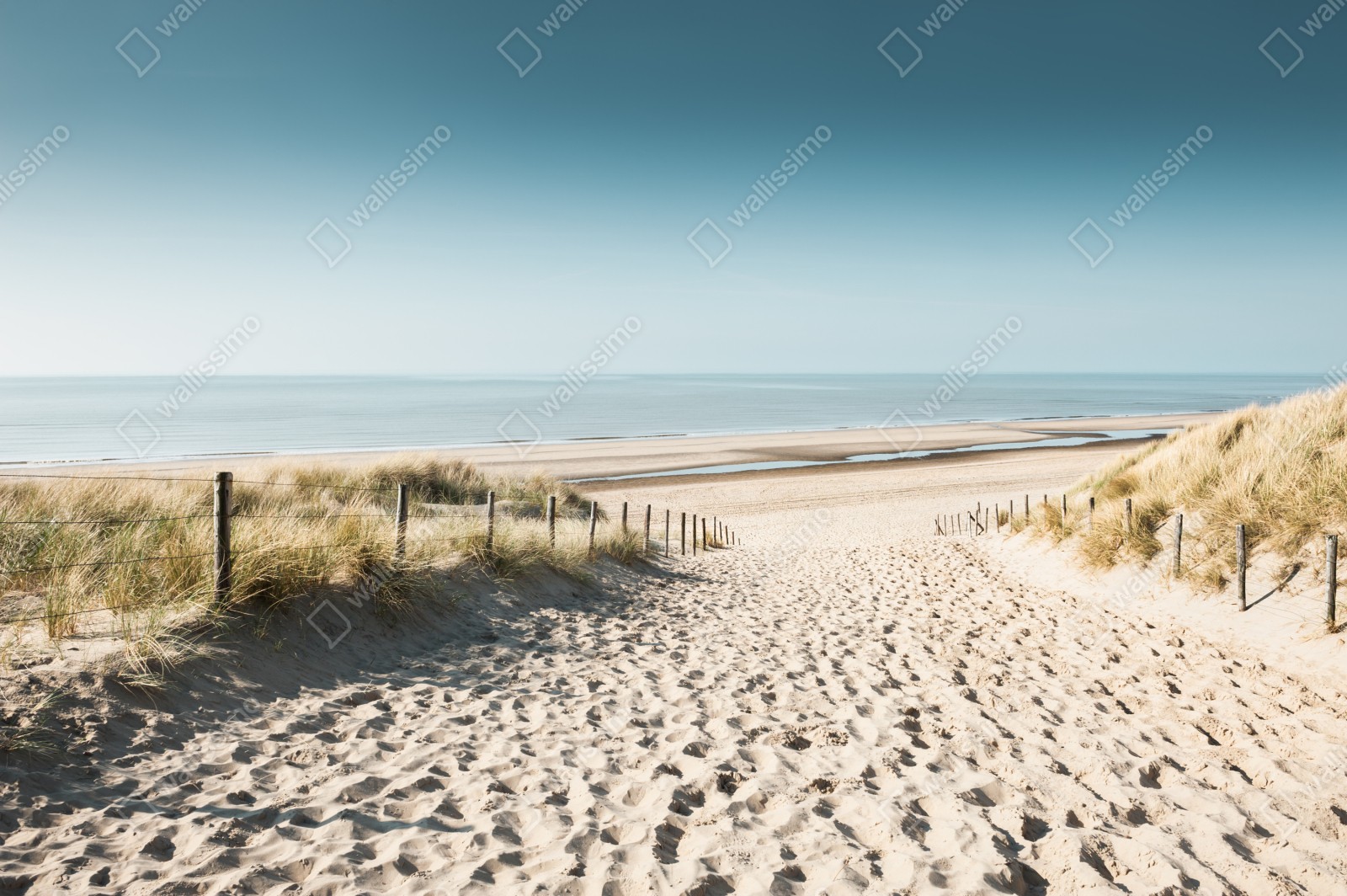 Repositionierbarer Aufkleber Sanddünen und ruhige Nordsee bei Noordwijk