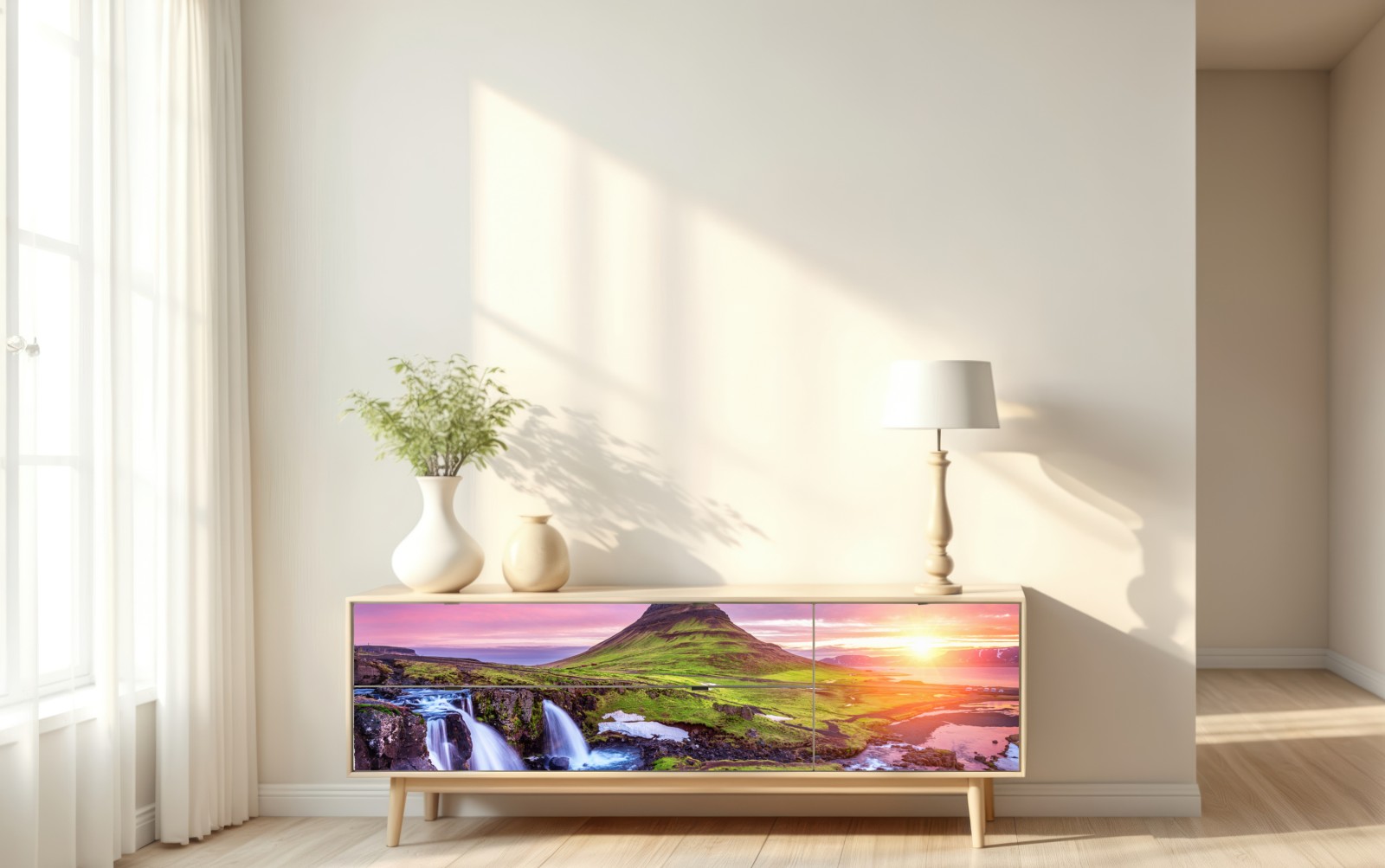 Repositionierbarer Aufkleber Kirkjufell bei sonnenaufgang