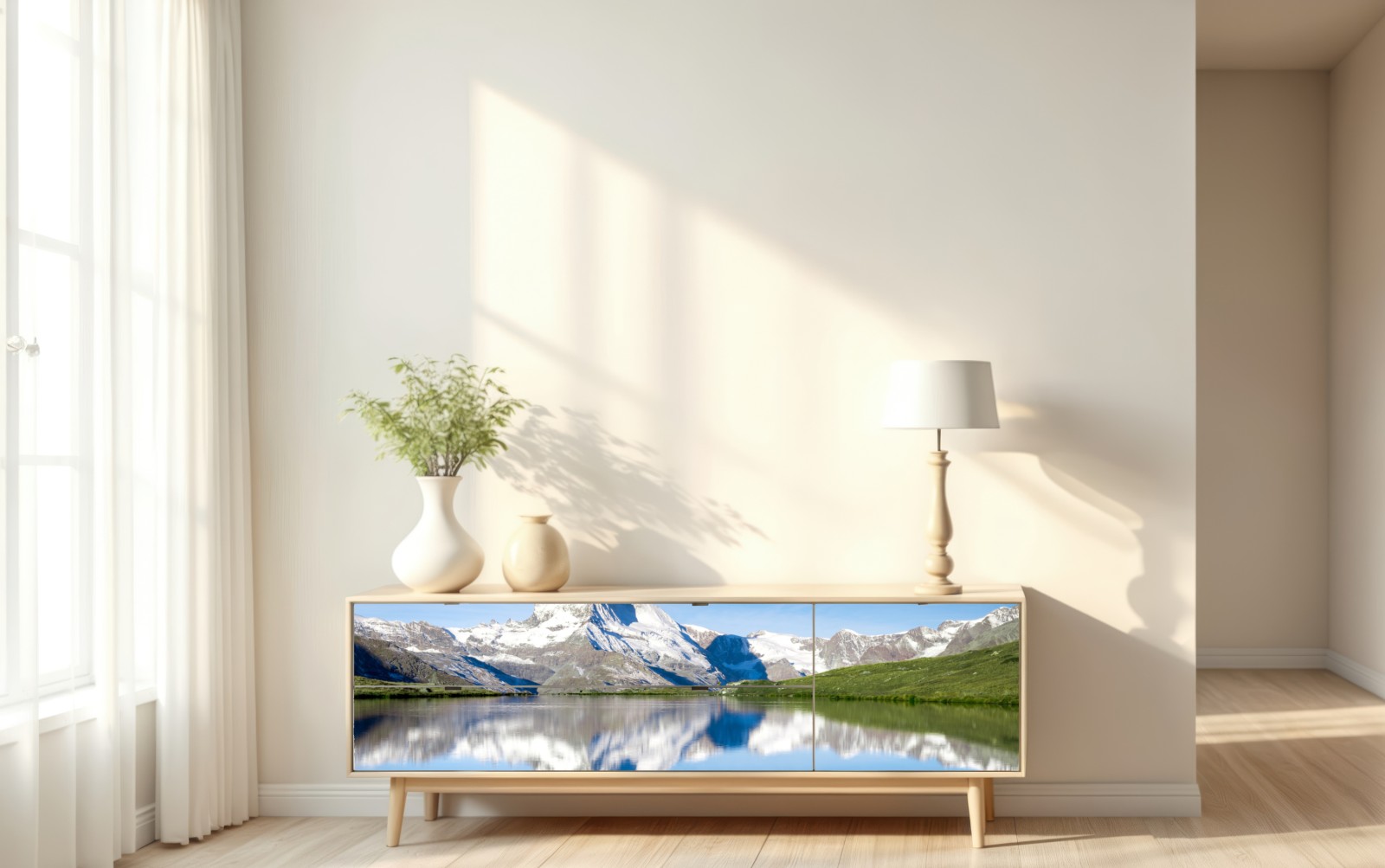 Repositionierbarer Aufkleber Majestätische bergspiegelung über alpensee