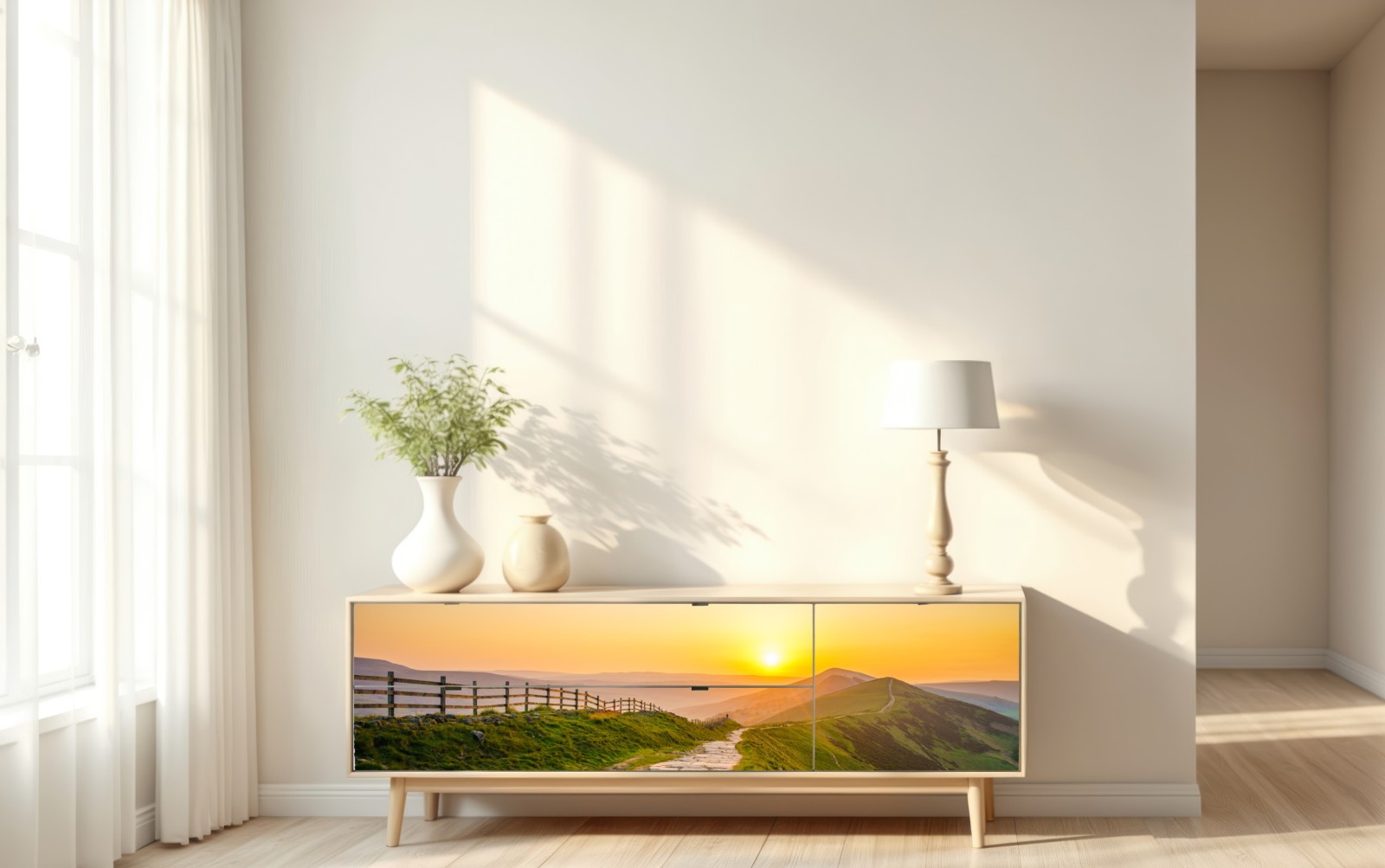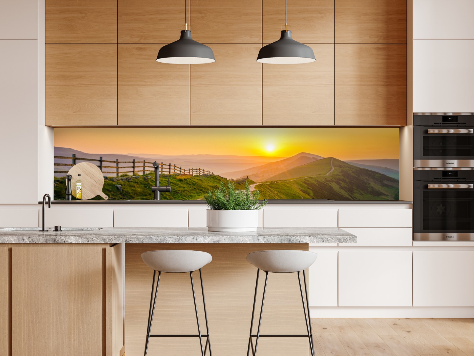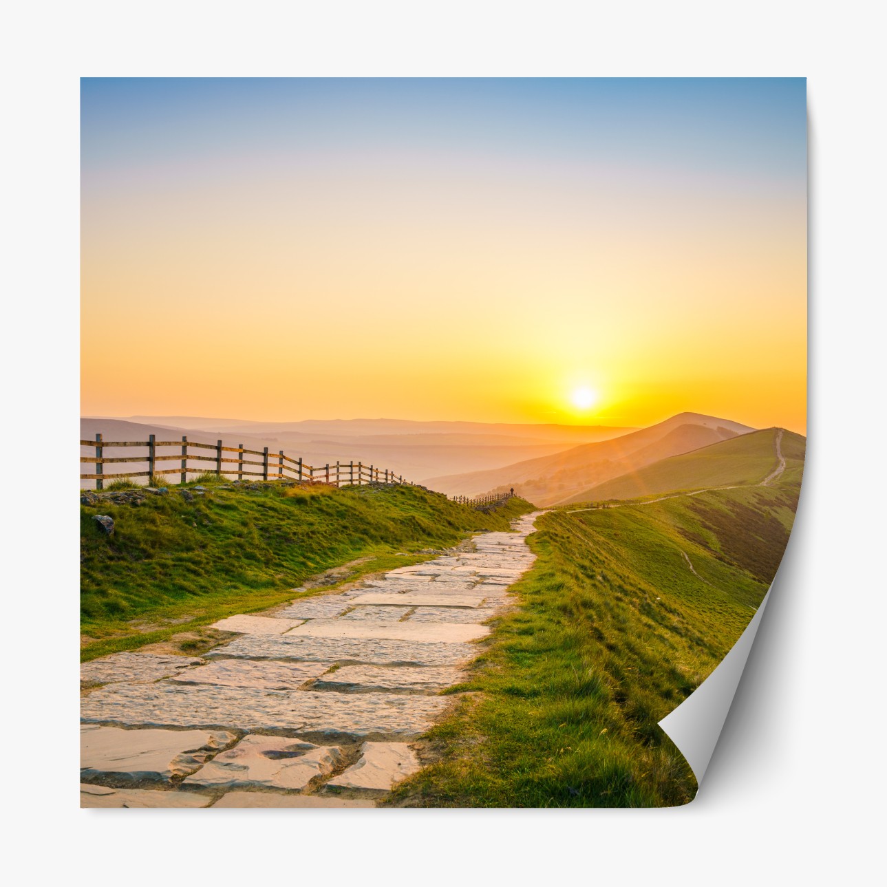 Repositionierbarer Aufkleber Sonnenbeschienener gebirgskamm bei sonnenaufgang