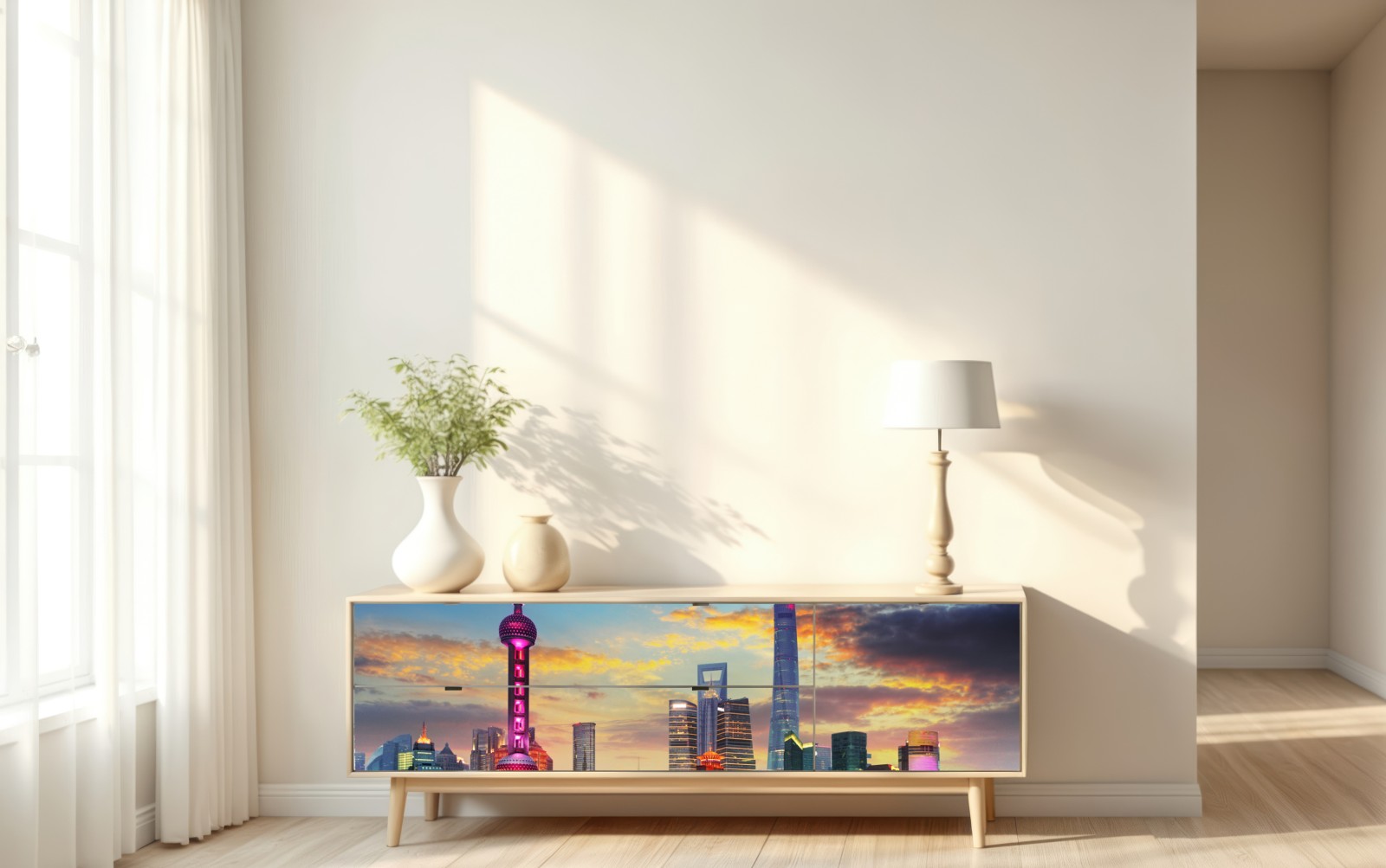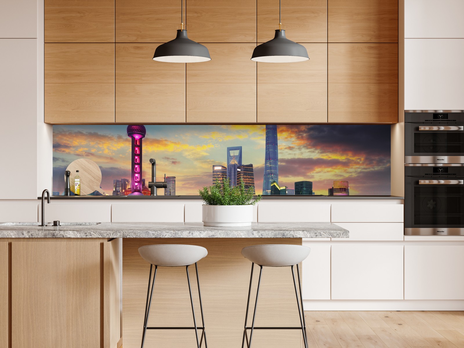 Repositionierbarer Aufkleber Shanghai skyline bei sonnenuntergang