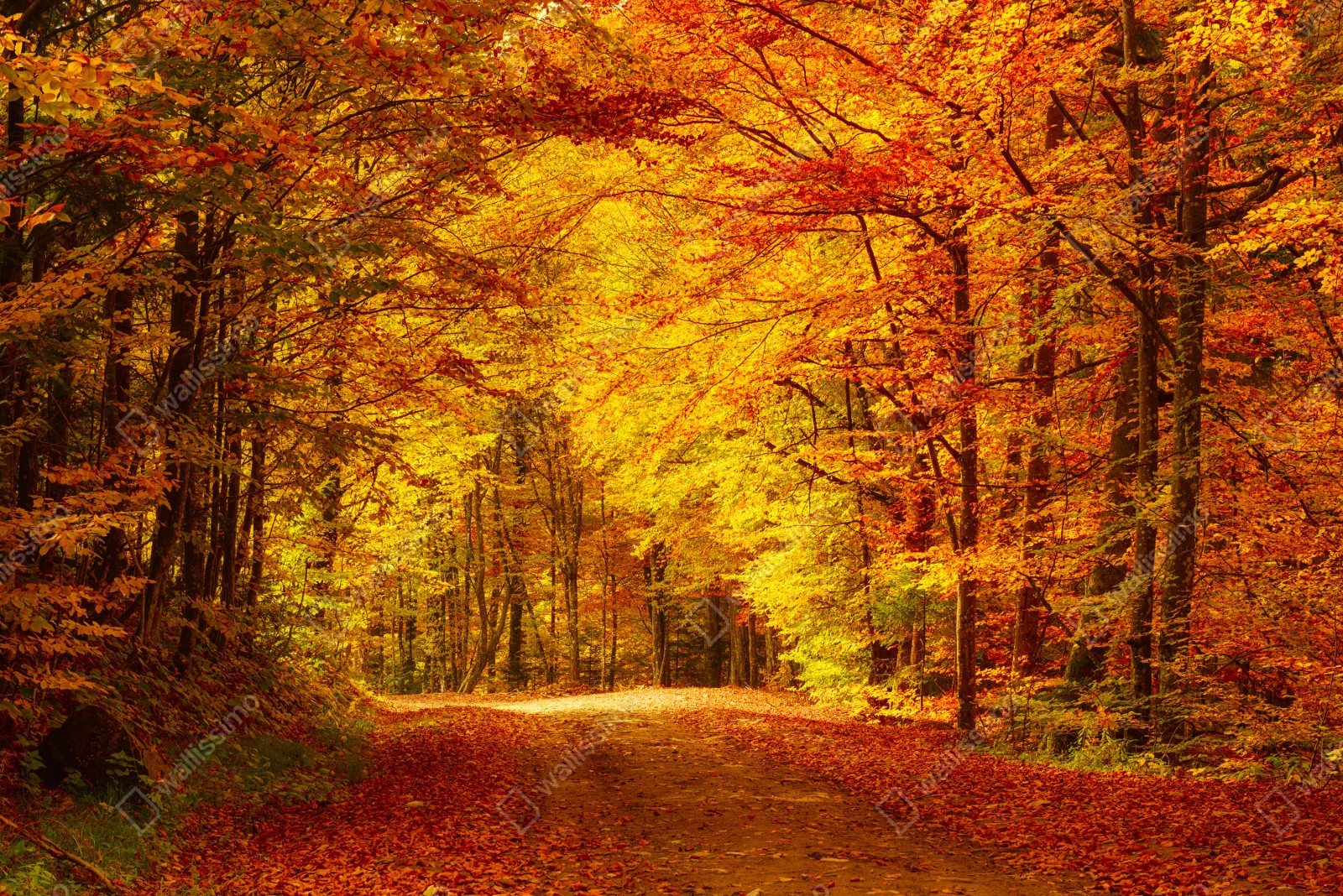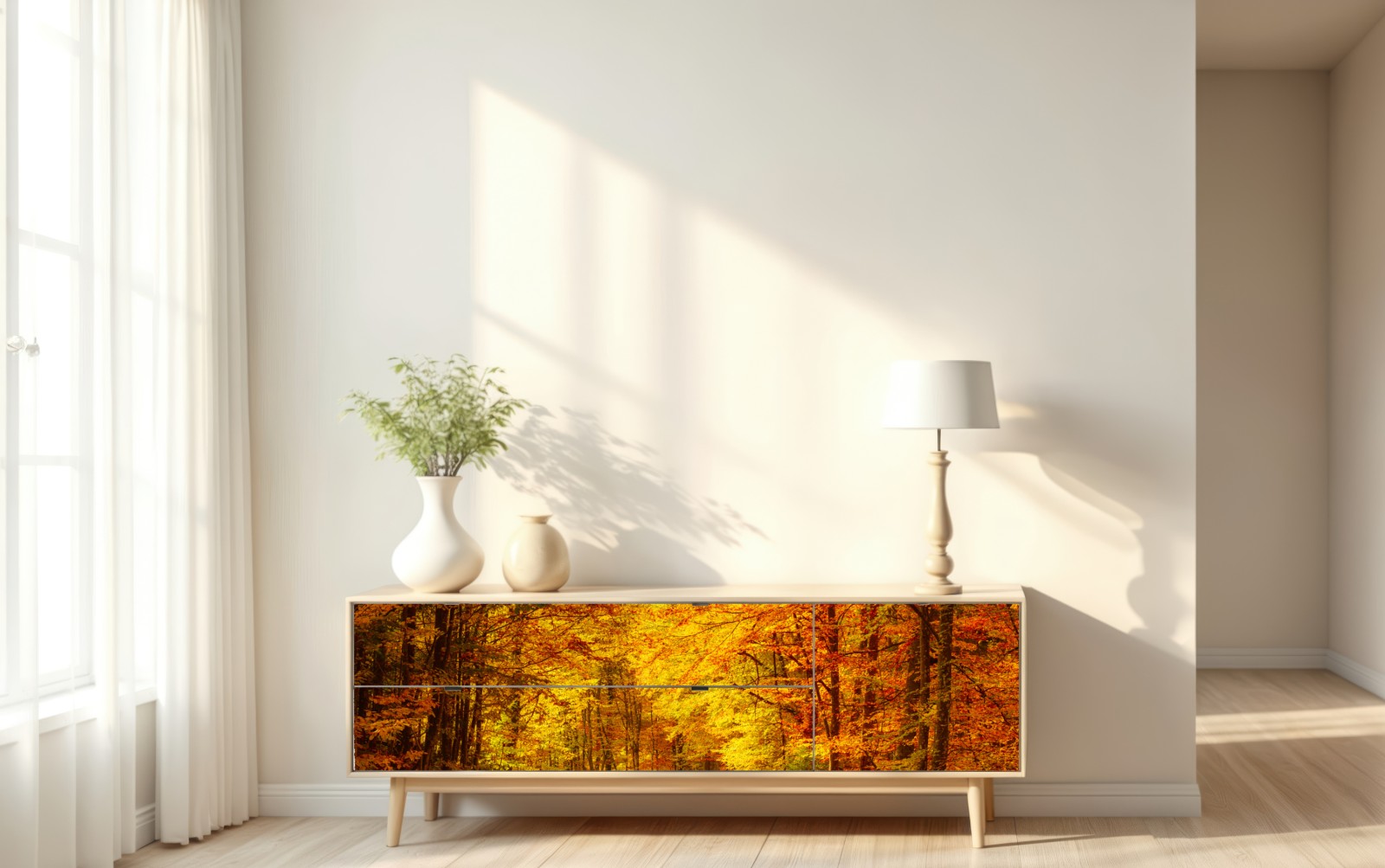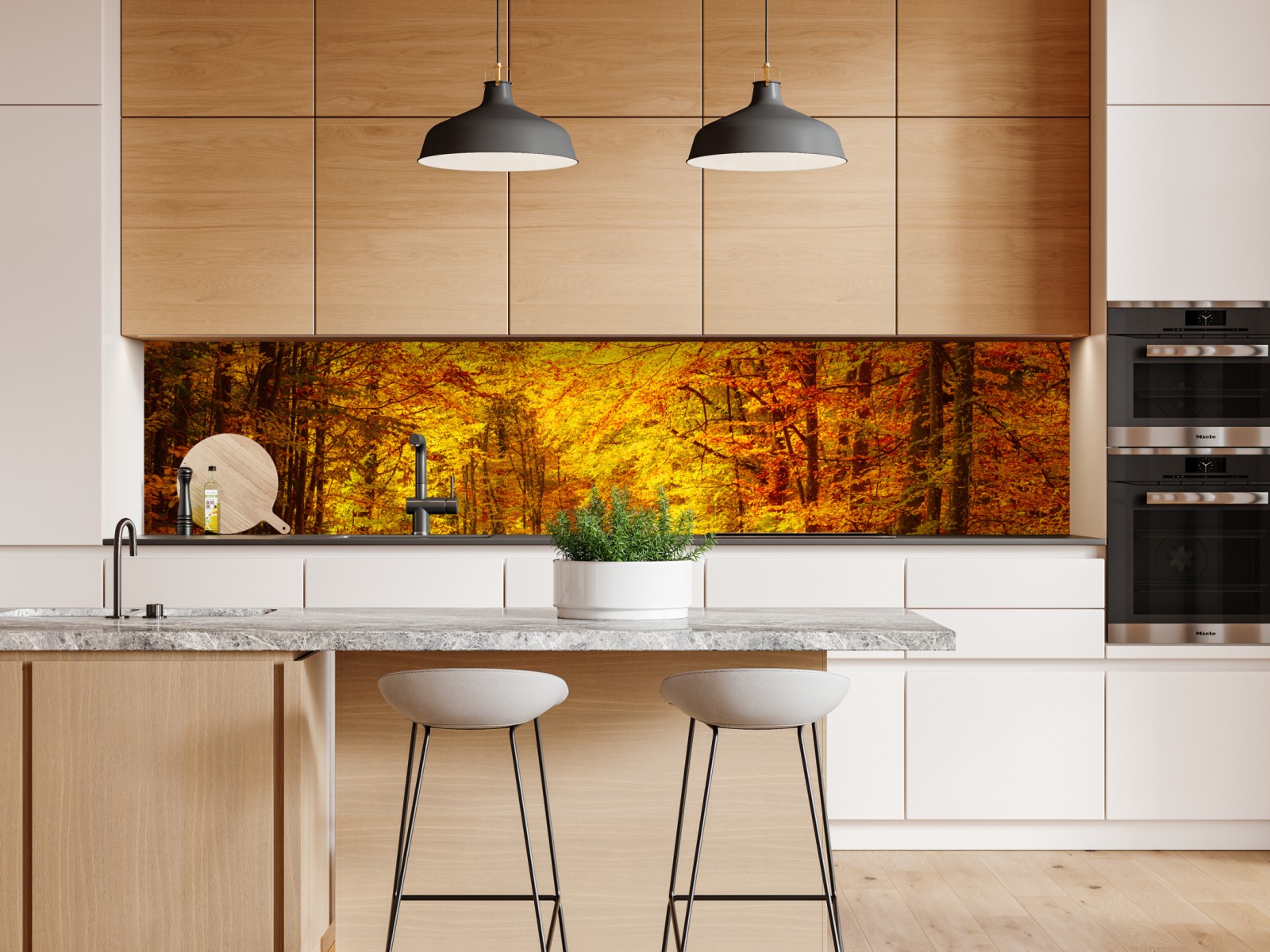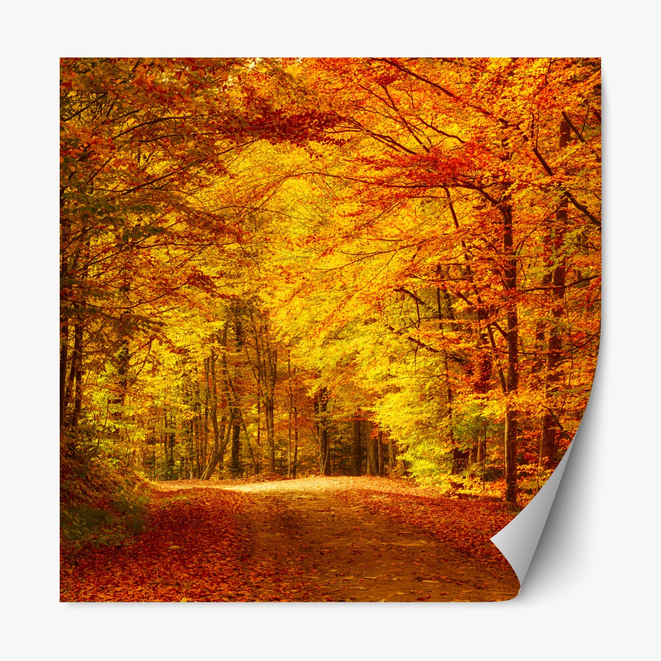 Repositionierbarer Aufkleber Goldener herbstwaldweg