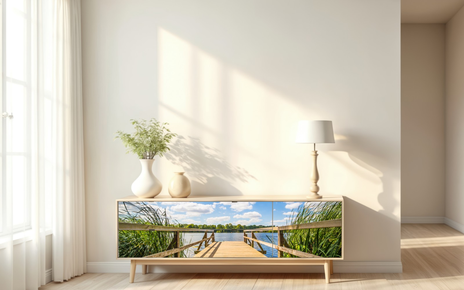 Repositionierbarer Aufkleber Sonniger steg am see