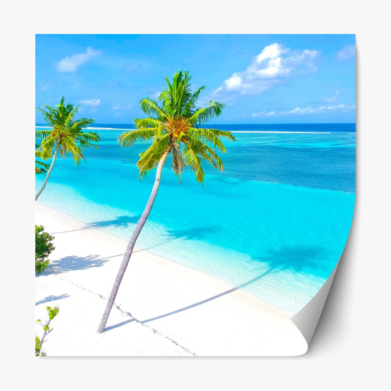 Repositionierbarer Aufkleber Tropischer türkisfarbener strand mit palmen