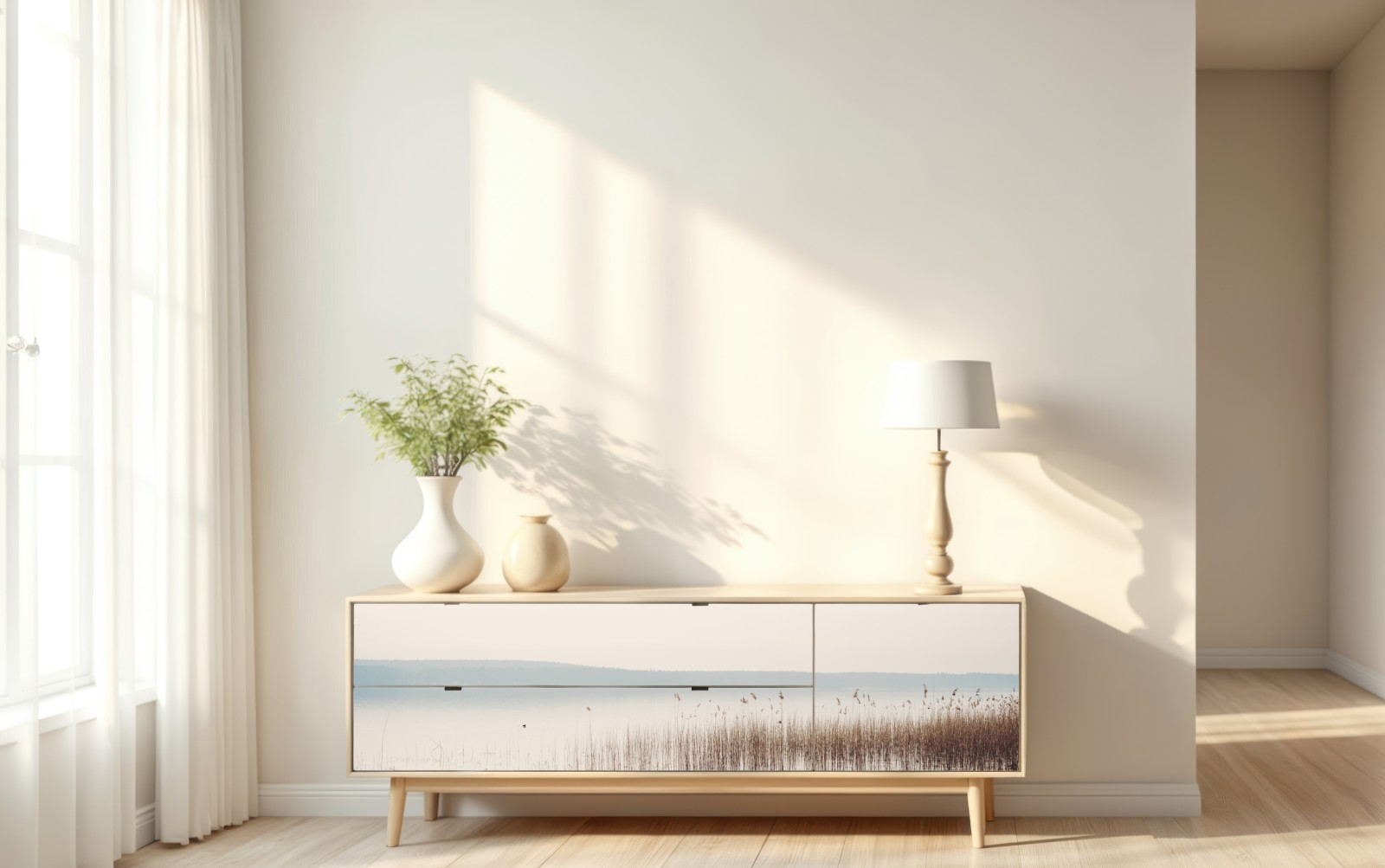 Repositionierbarer Aufkleber Ruhige schilfzone am see