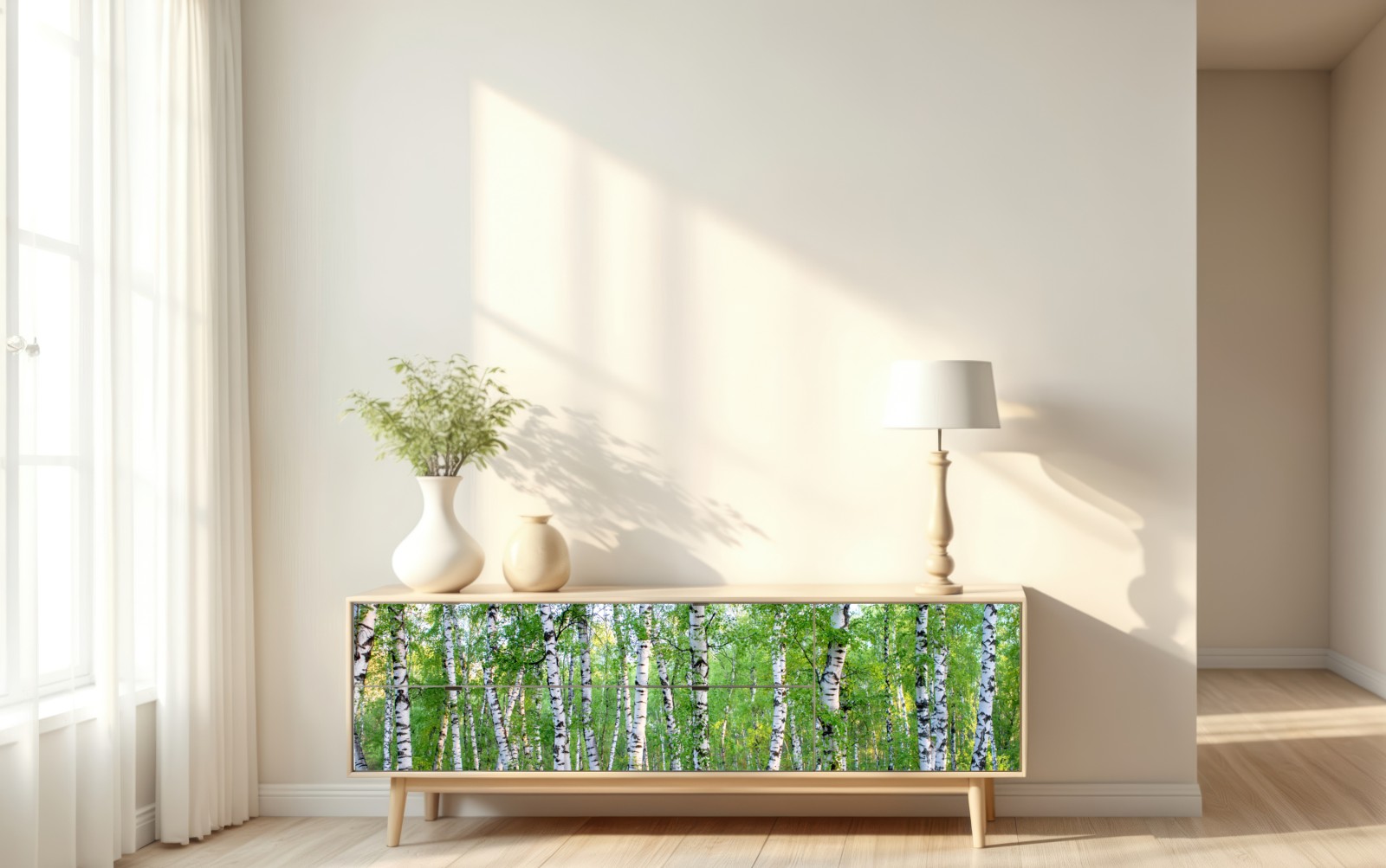 Repositionierbarer Aufkleber Ruhiger birkenhain im sommer