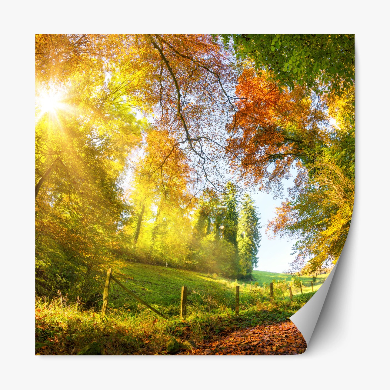 Repositionierbarer Aufkleber Goldener herbstwaldweg