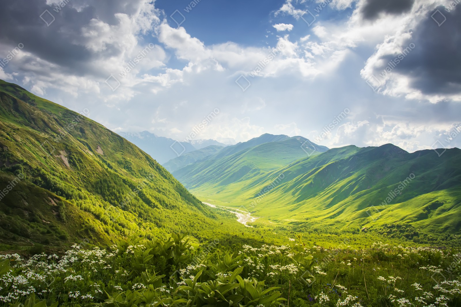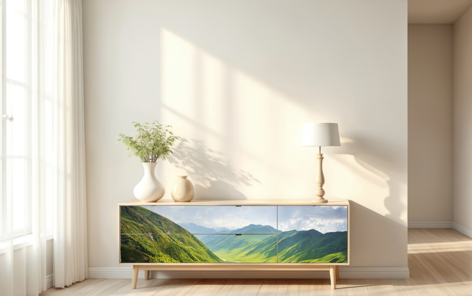 Repositionierbarer Aufkleber Üppiges grünes tal