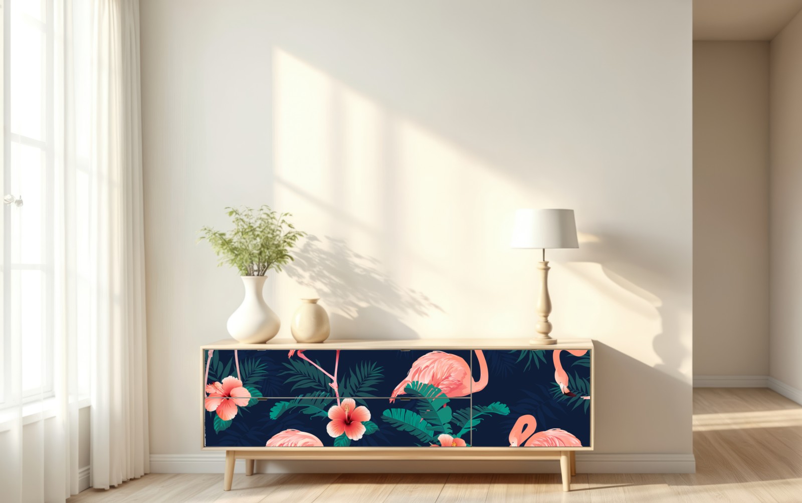 Repositionierbarer Aufkleber Tropisches rosa flamingo-muster