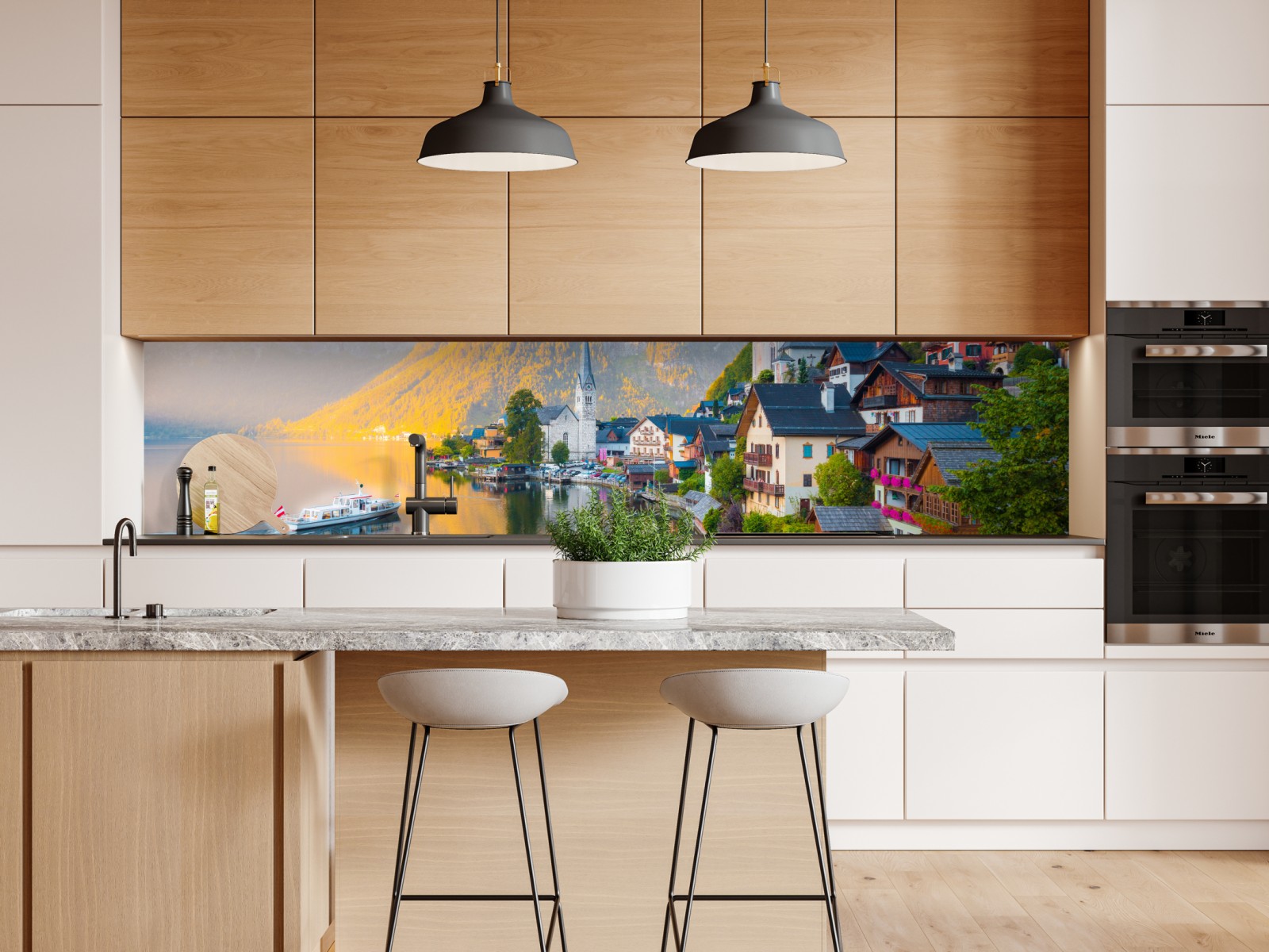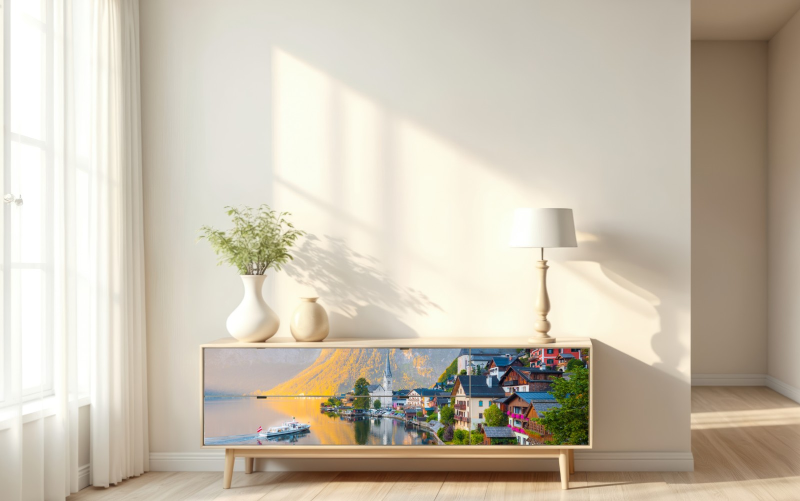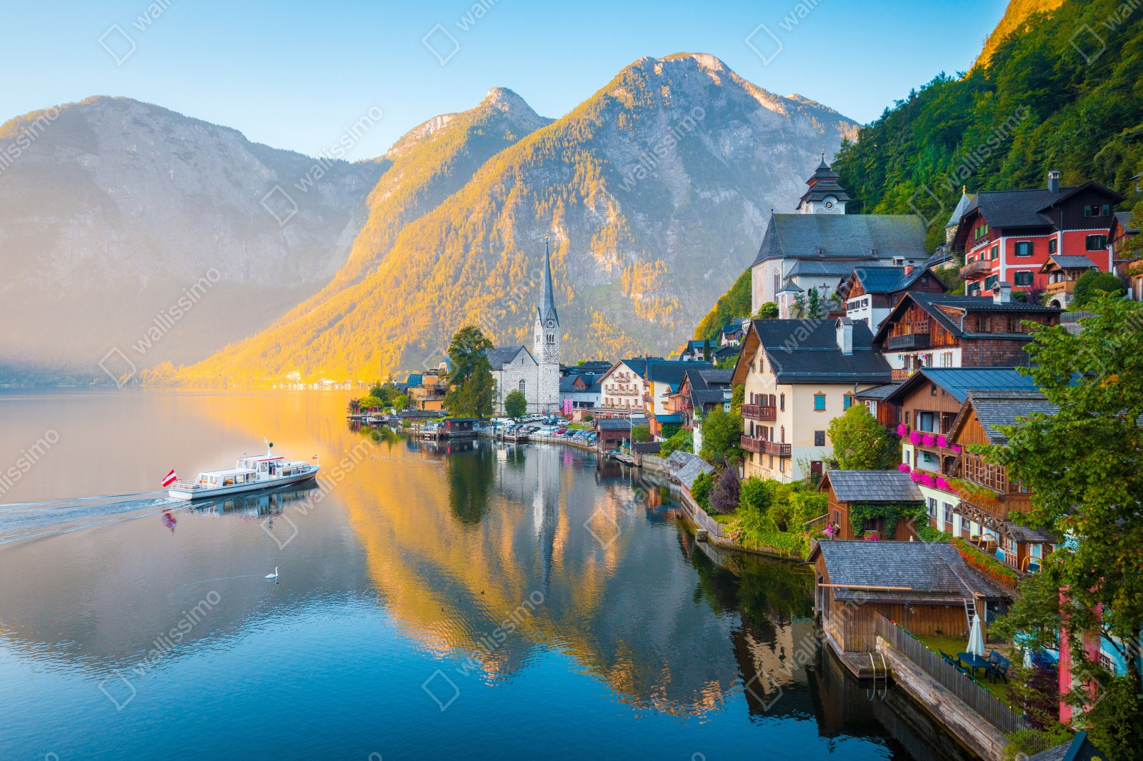 Repositionierbarer Aufkleber Morgendlicher lichtglanz über Hallstatt am see