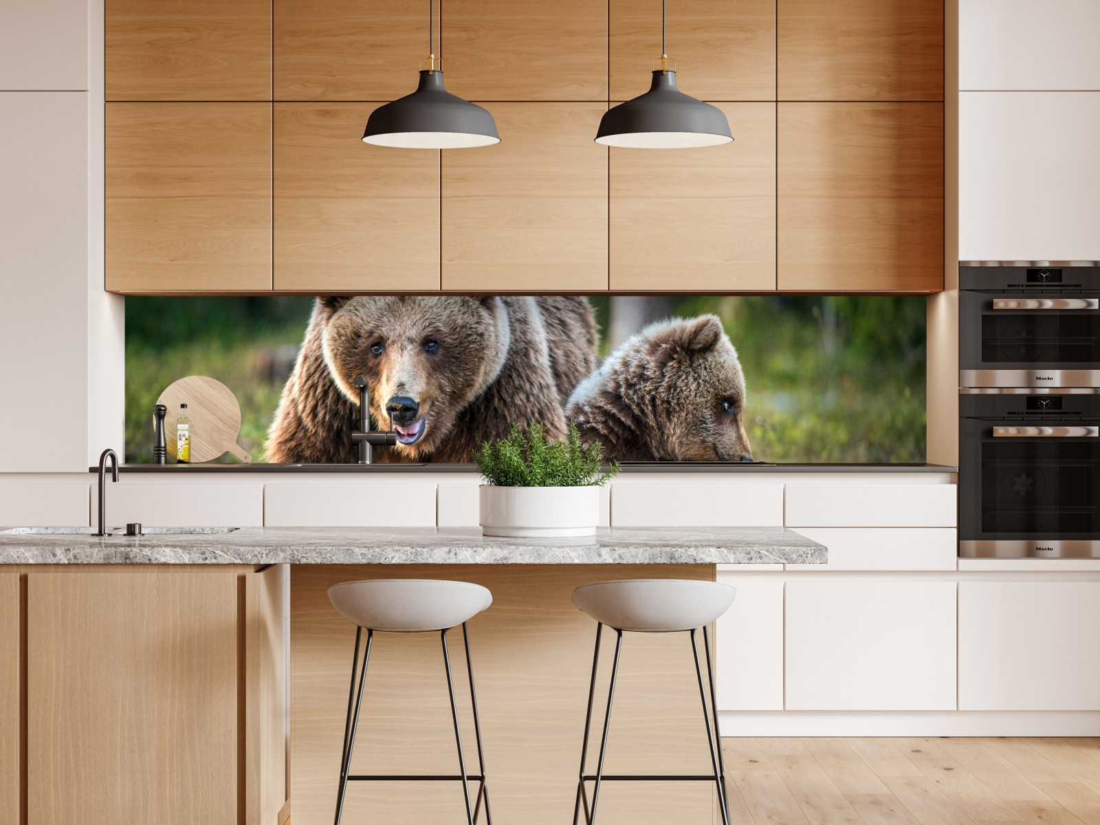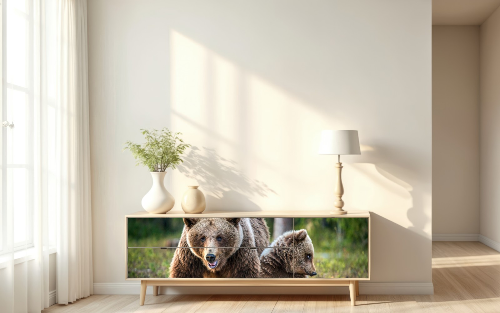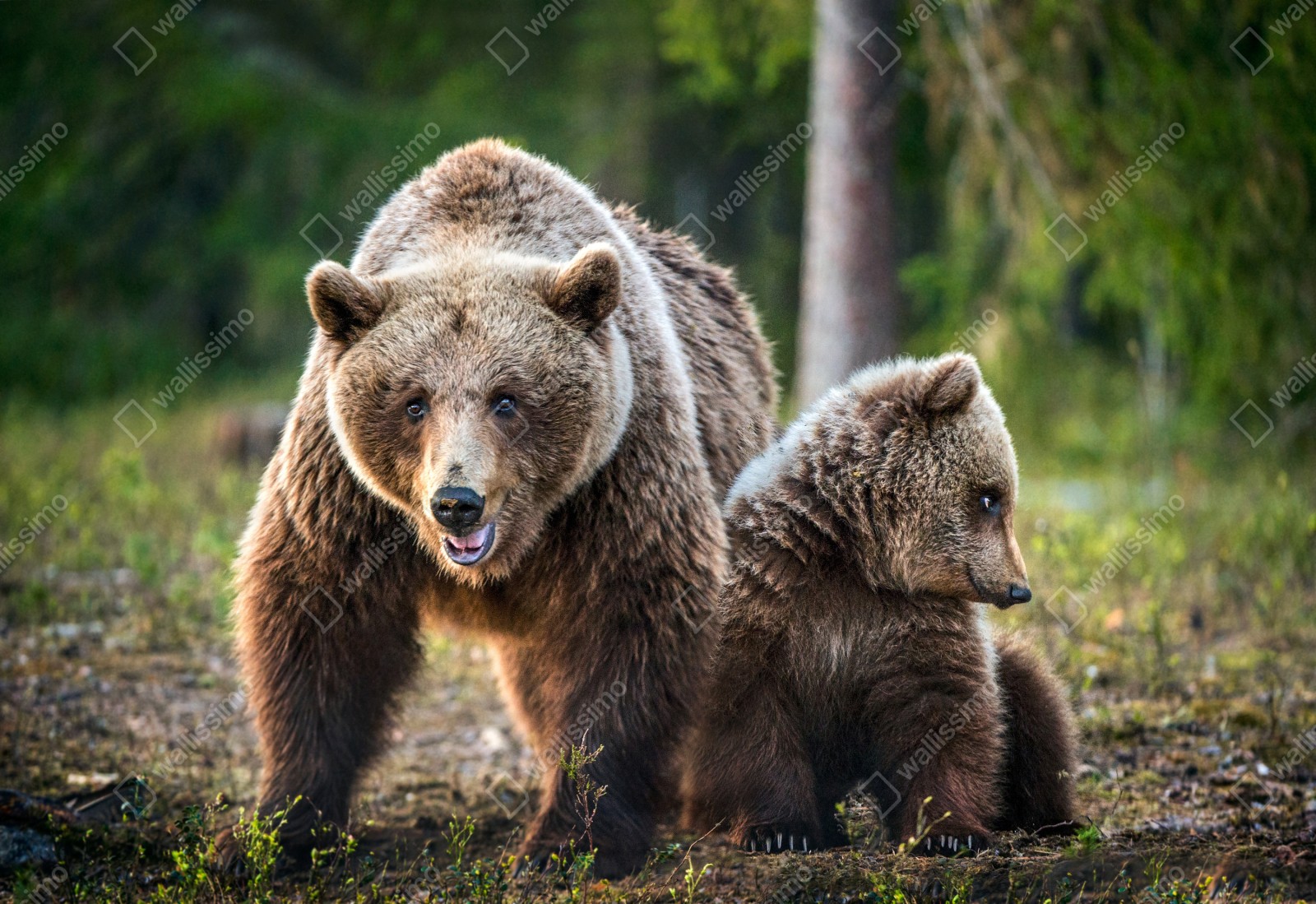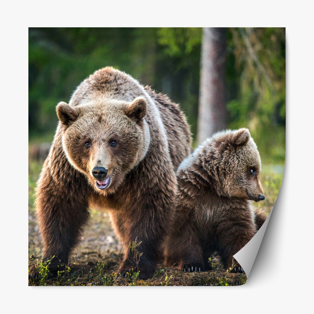 Repositionierbarer Aufkleber Braunbär mit jungem im wald