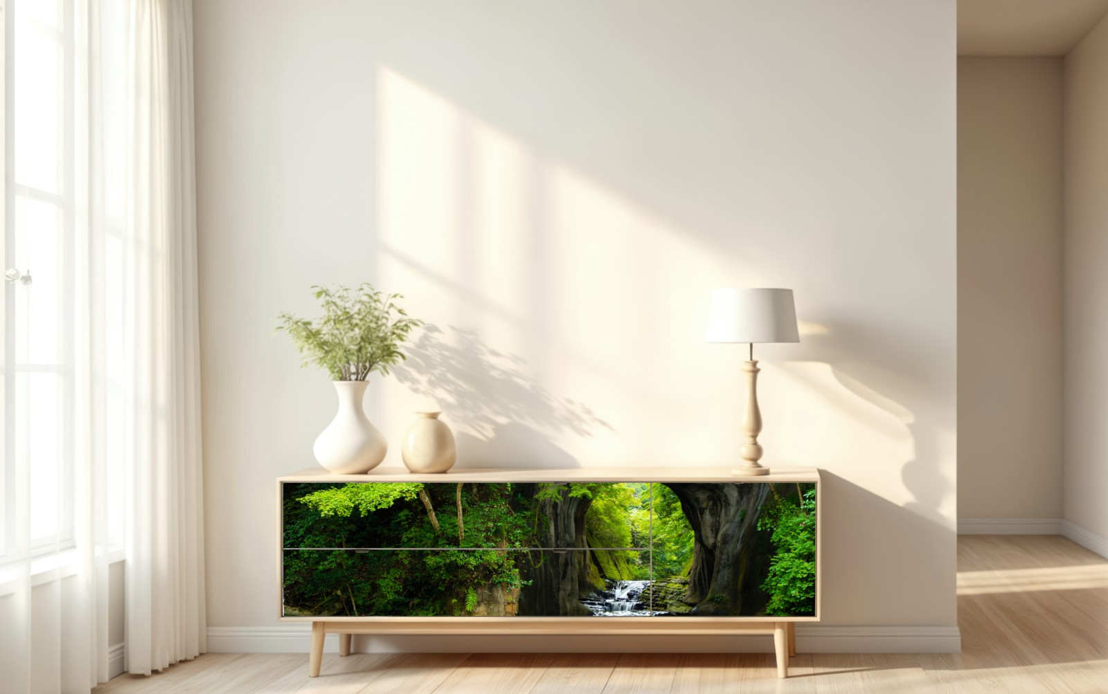 Repositionierbarer Aufkleber Geheimer wasserfall im felsbogen