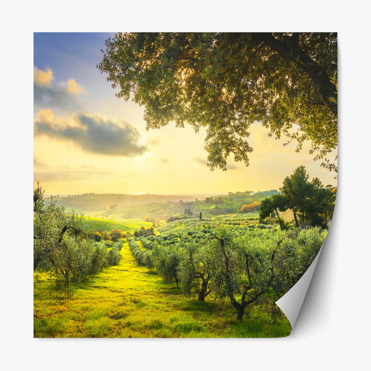 Repositionierbarer Aufkleber Olivenhain bei sonnenuntergang in Maremma, Toskana