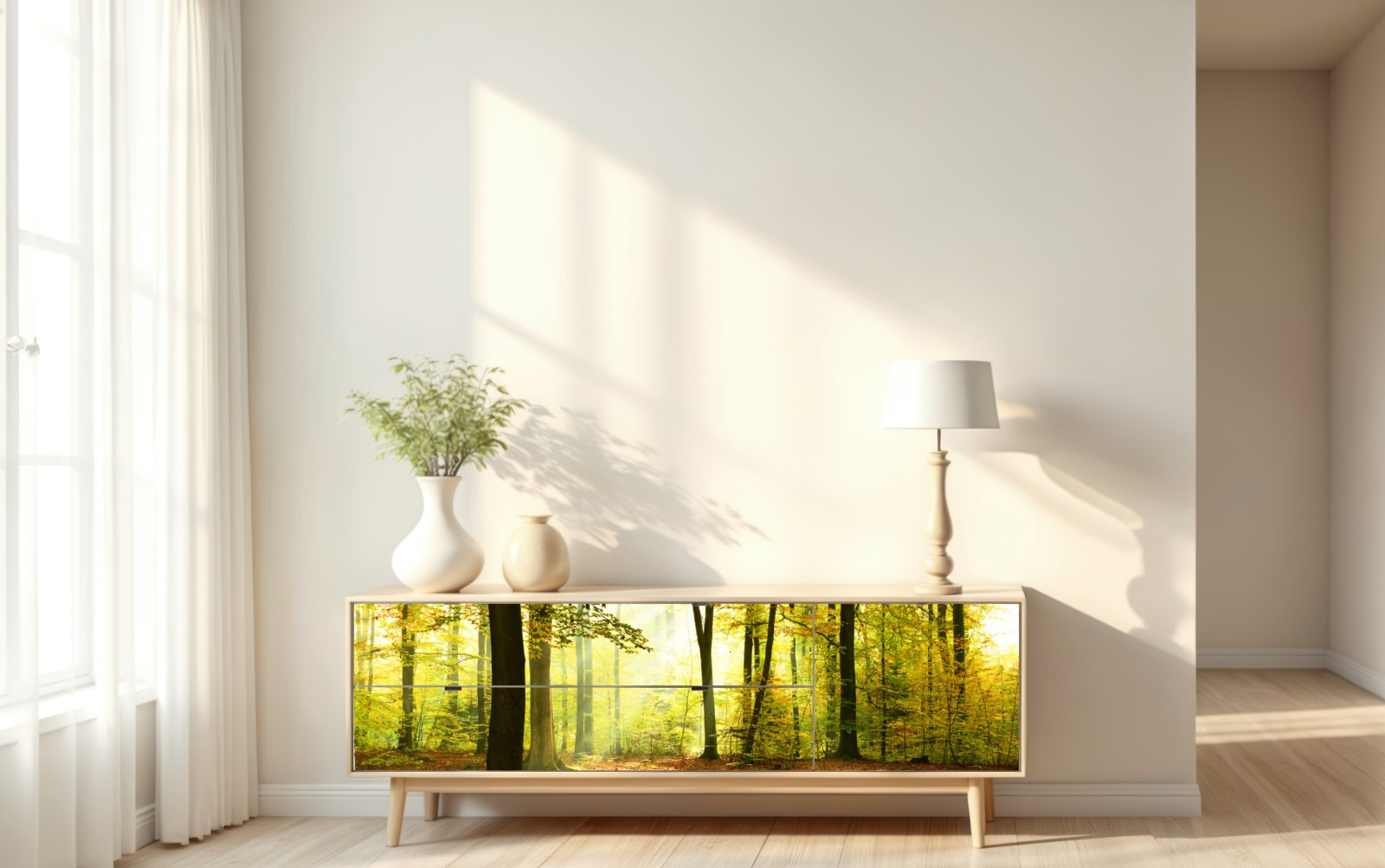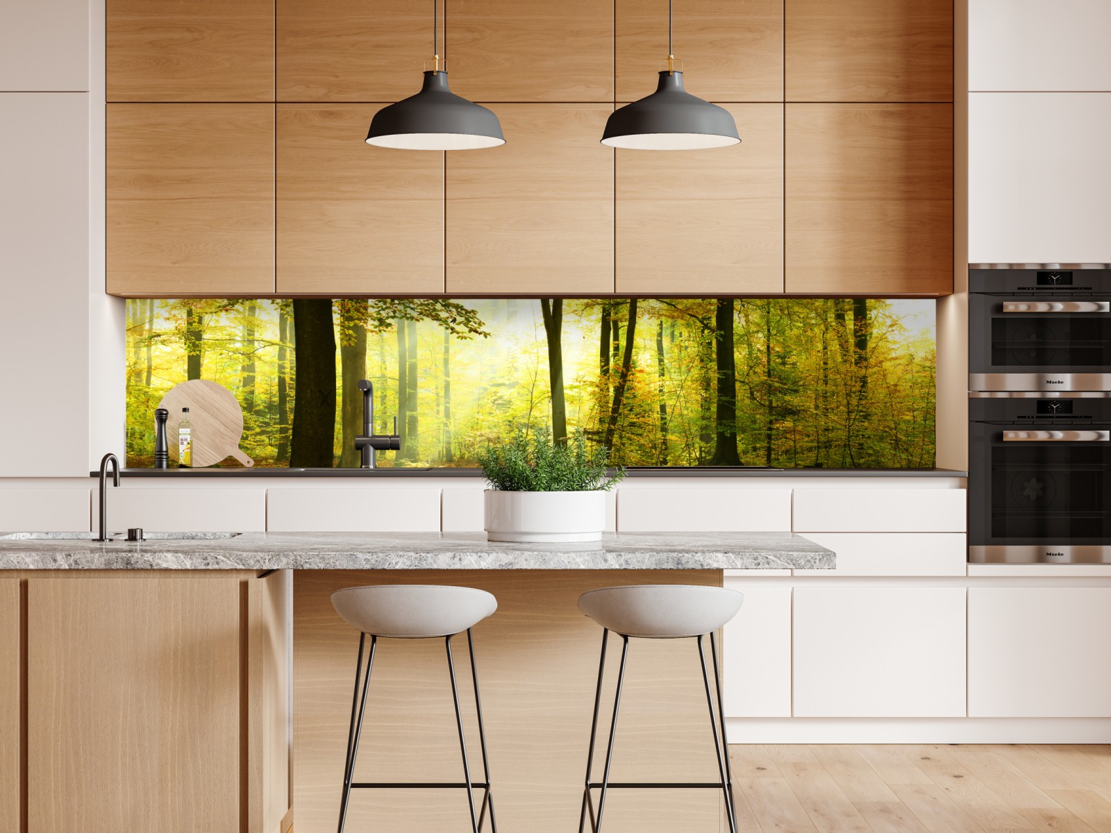 Repositionierbarer Aufkleber Goldener herbstwald am morgen