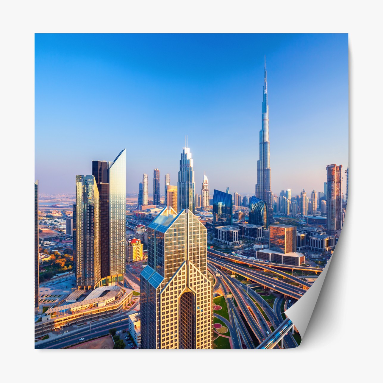 Repositionierbarer Aufkleber Panorama Dubais mit Burj Khalifa bei sonnenuntergang
