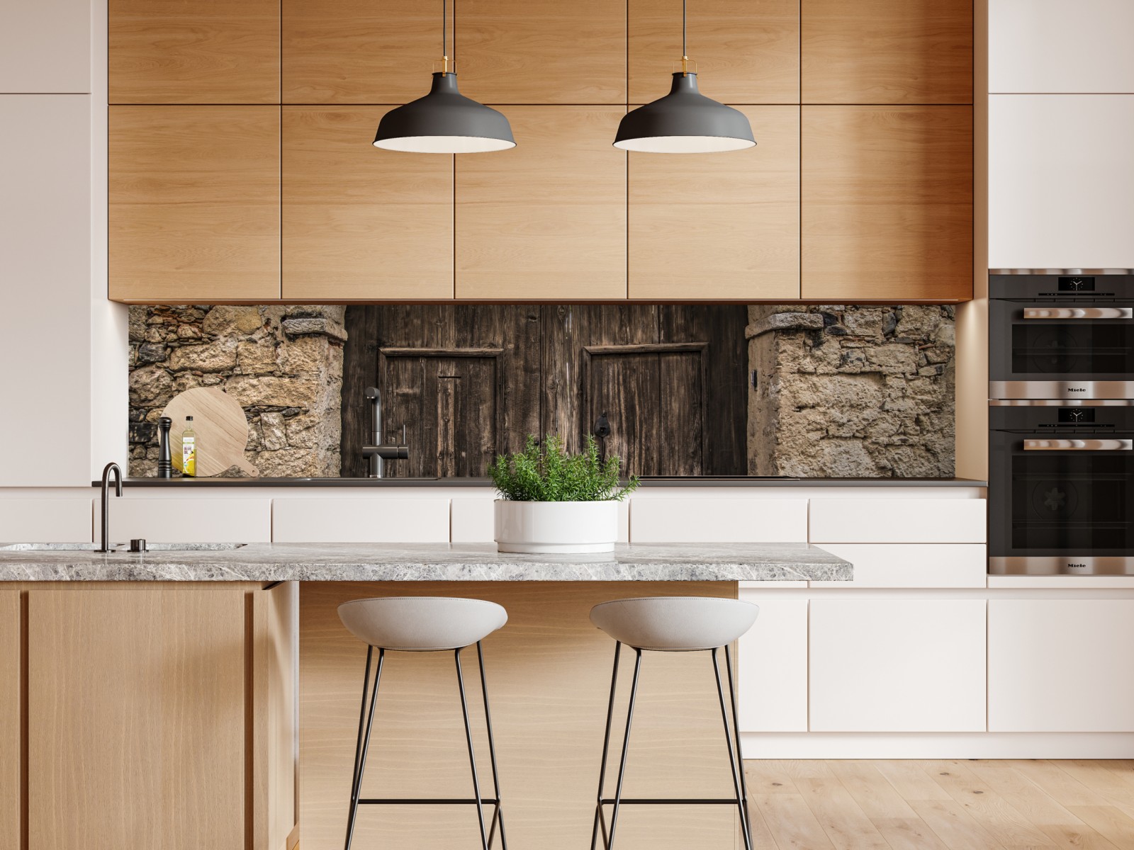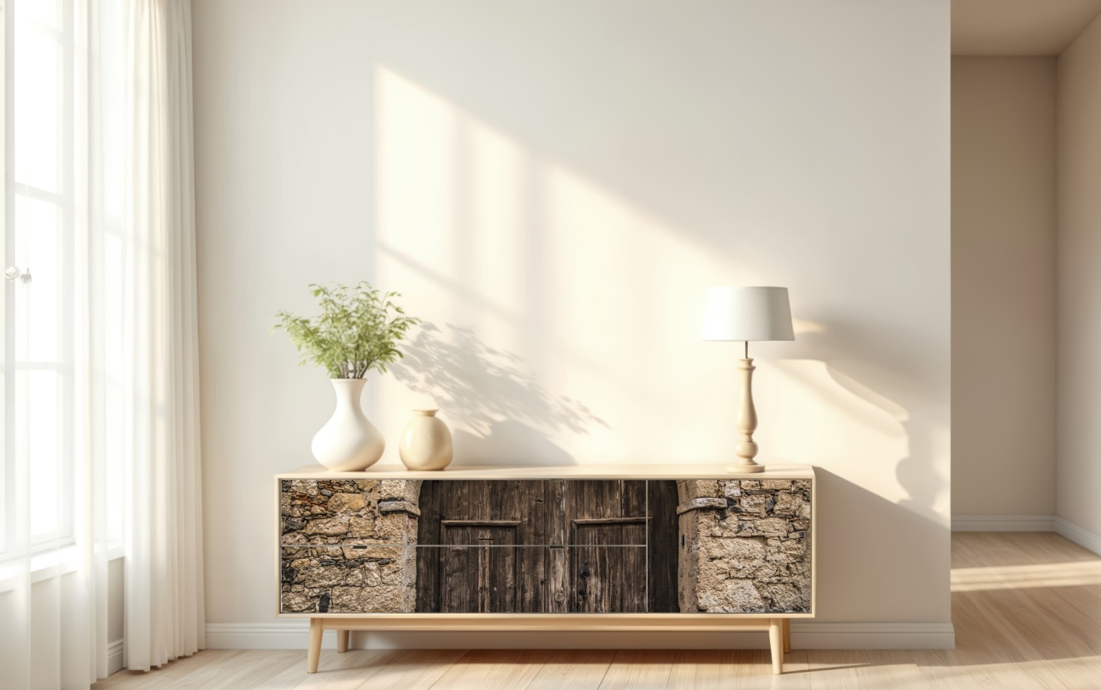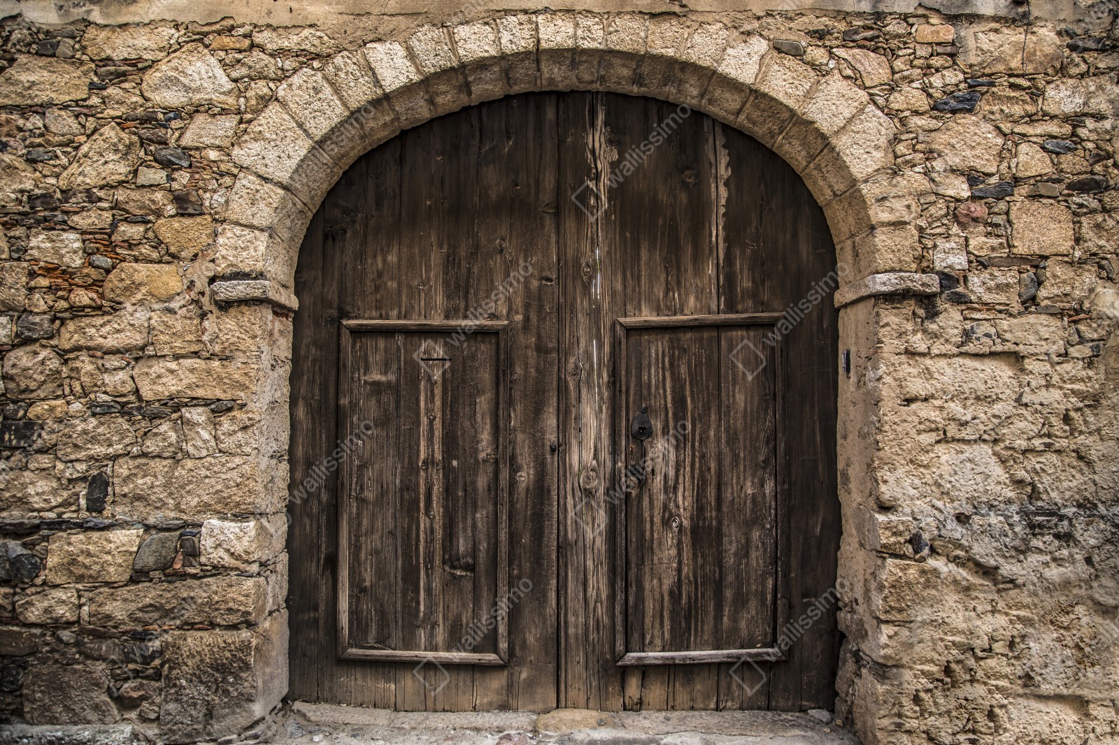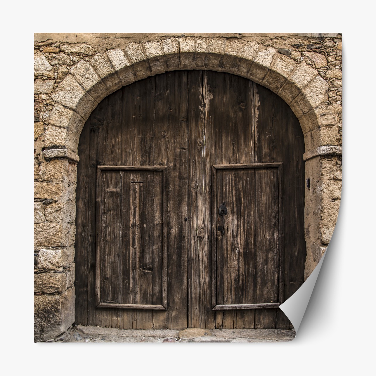 Repositionierbarer Aufkleber Rustikale holztür mit steinbogen