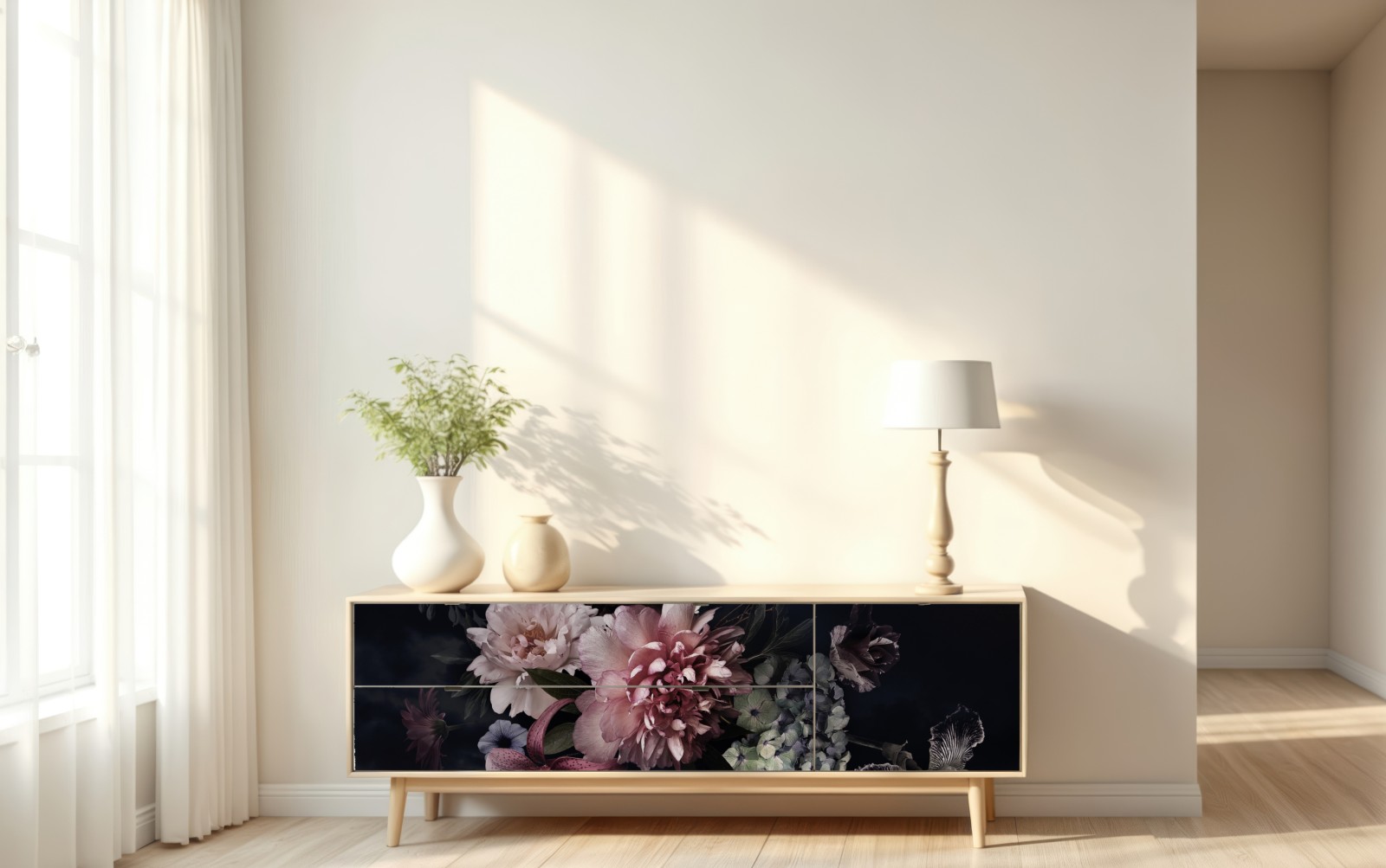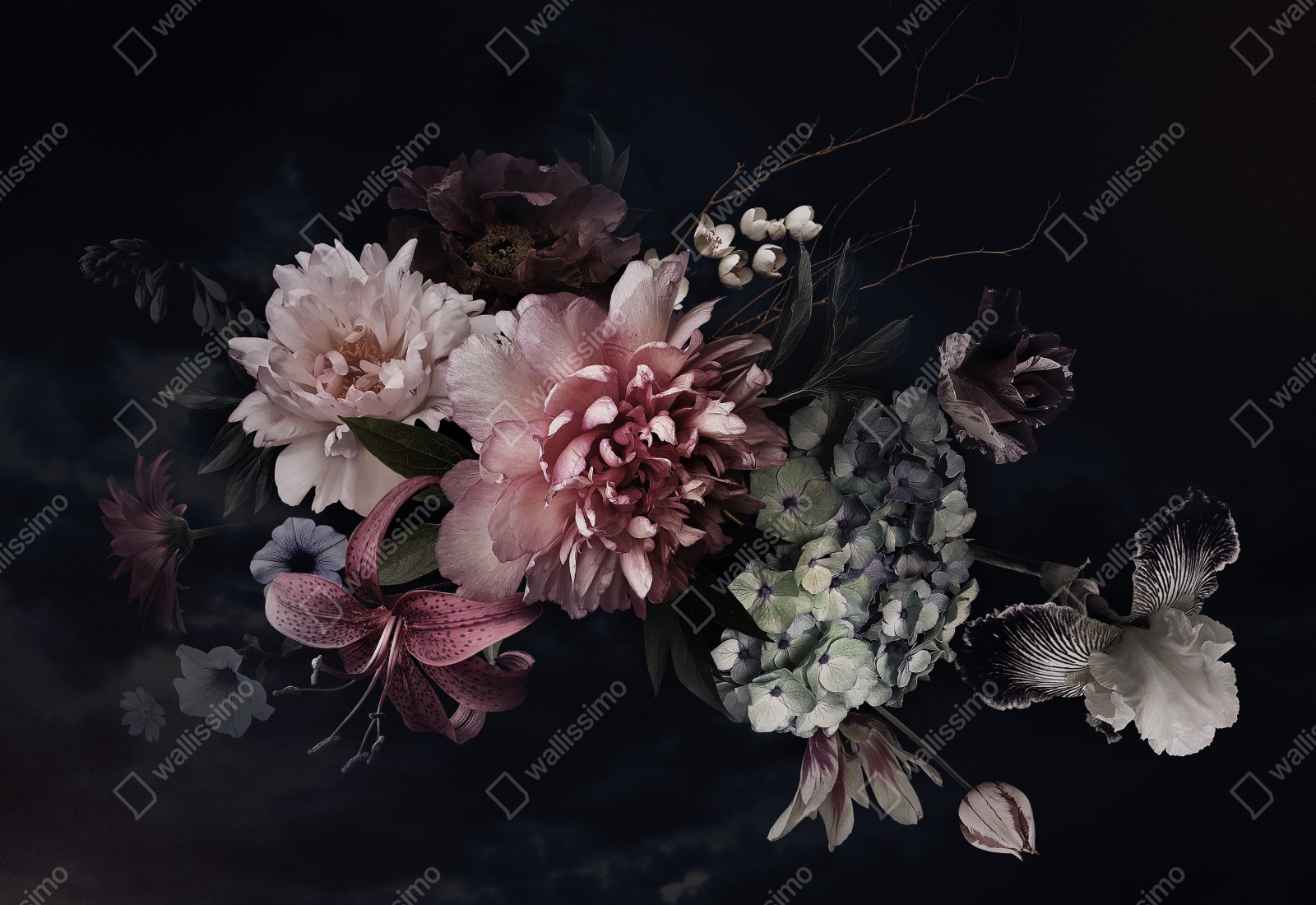 Repositionierbarer Aufkleber Düsterer pfingstrosen- und hortensienstrauß
