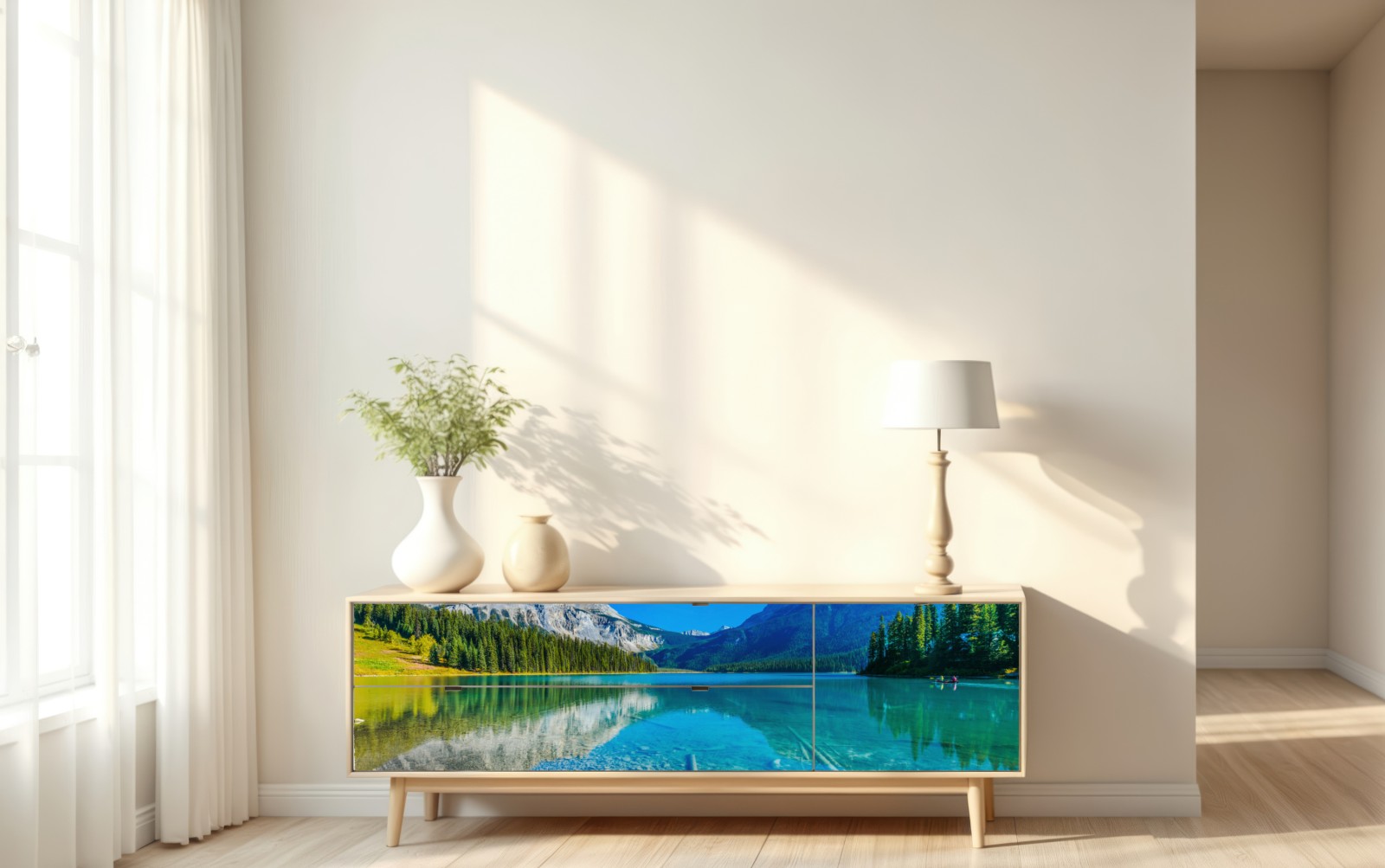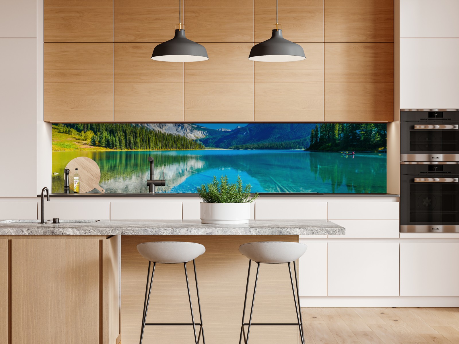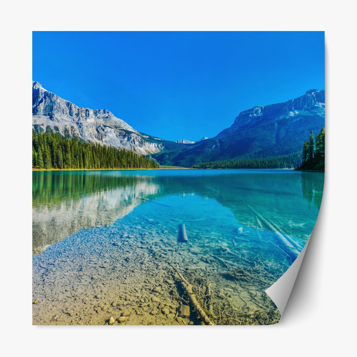 Repositionierbarer Aufkleber Türkises alpensee mit bergreflexionen