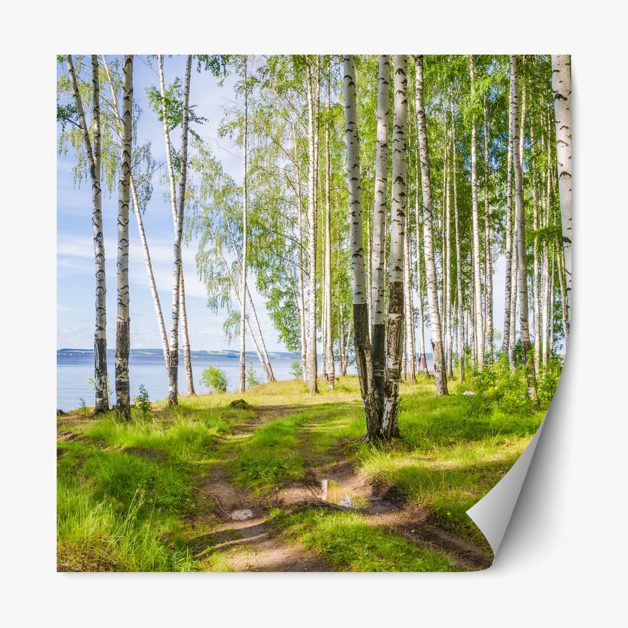 Repositionierbarer Aufkleber Sonnige birkenlichtung am wasser