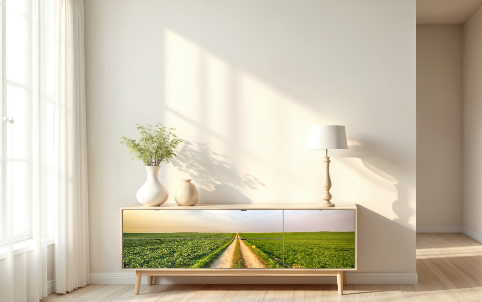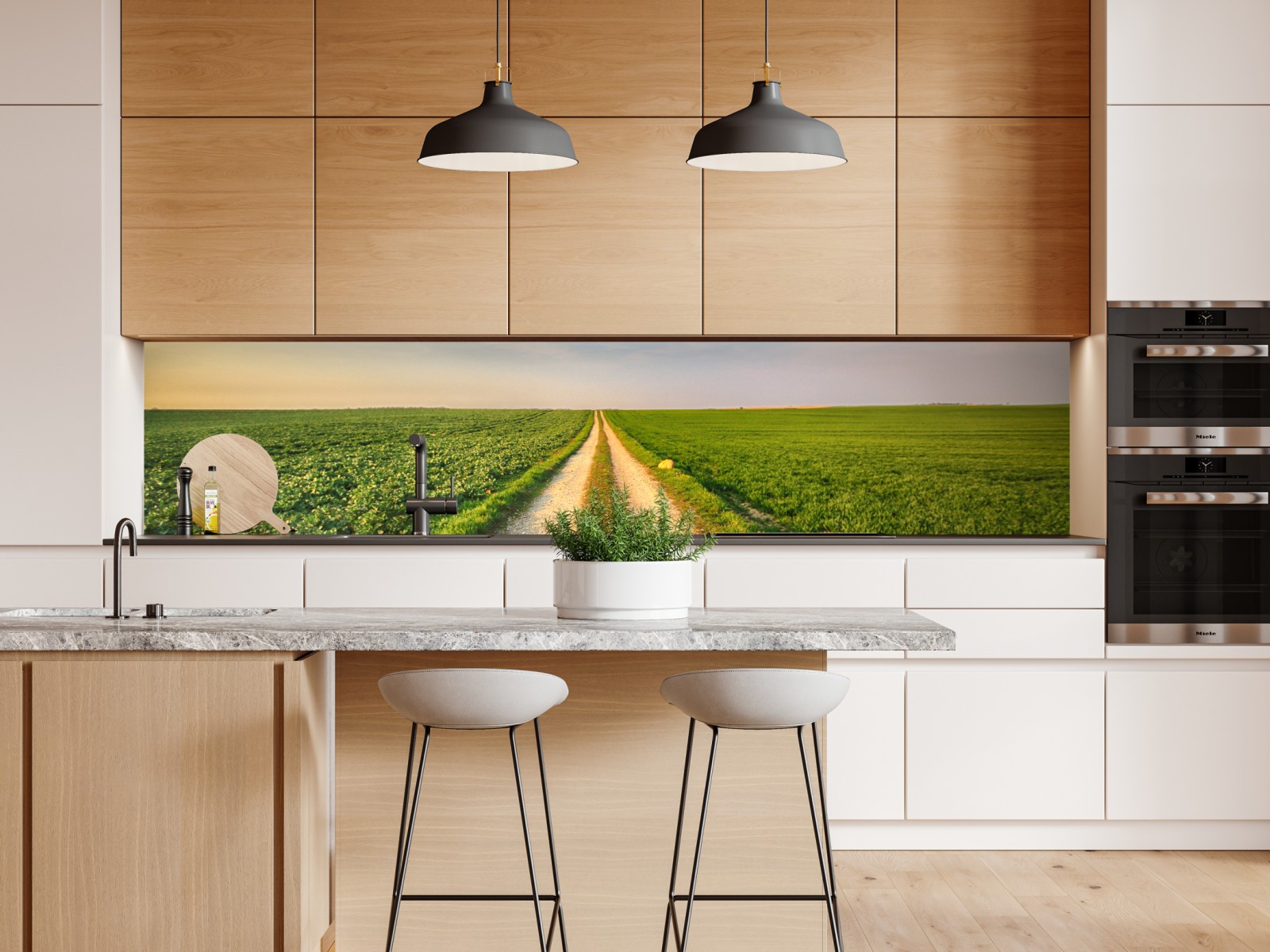 Repositionierbarer Aufkleber Feldweg durch grüne felder