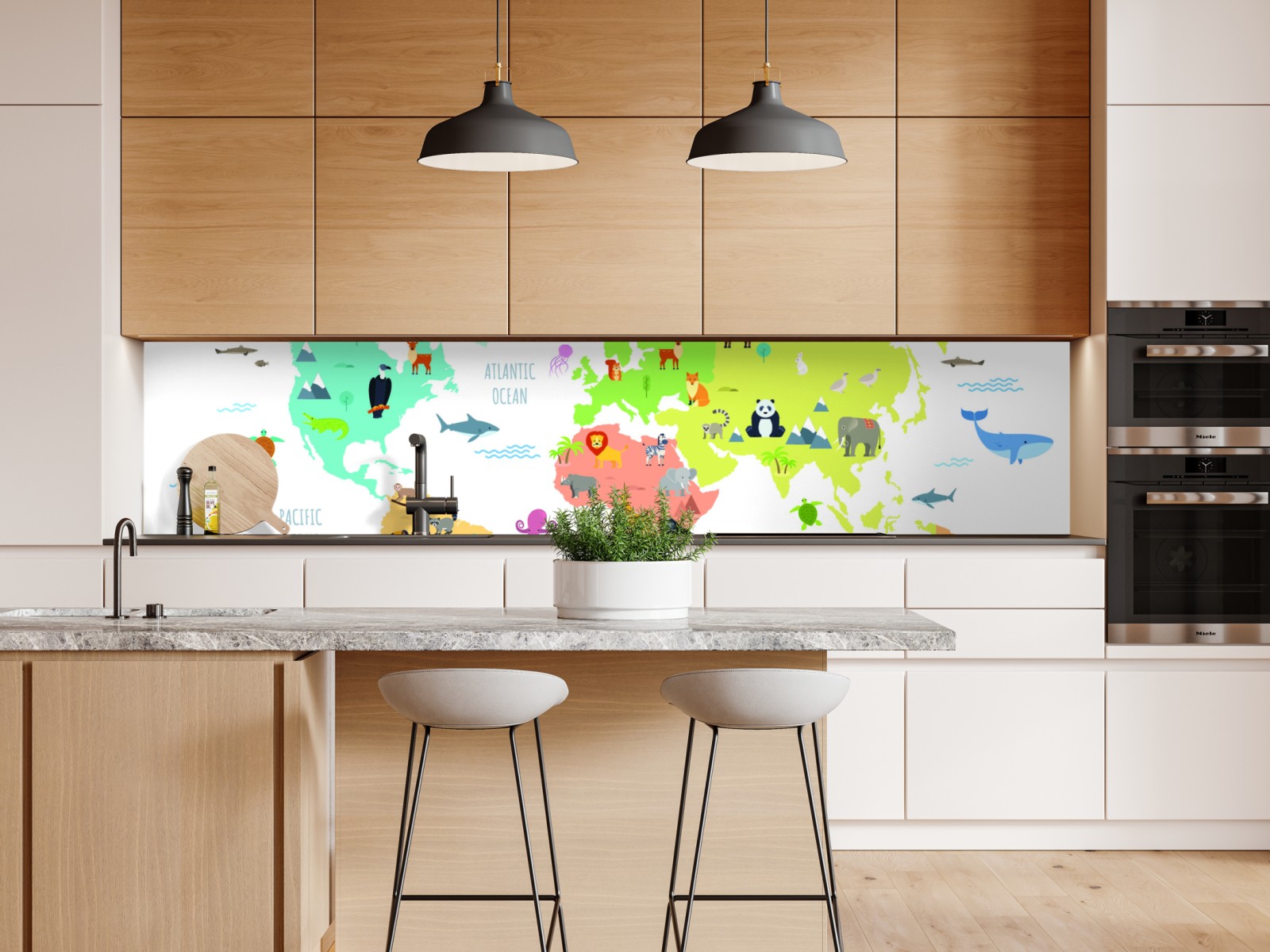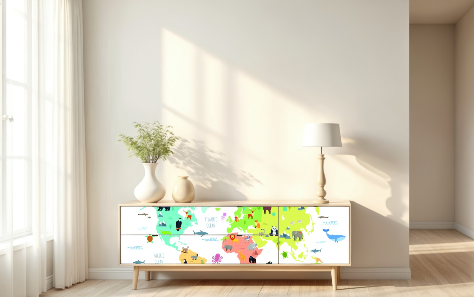 Repositionierbarer Aufkleber Illustrierte weltkarte mit tieren für kinder