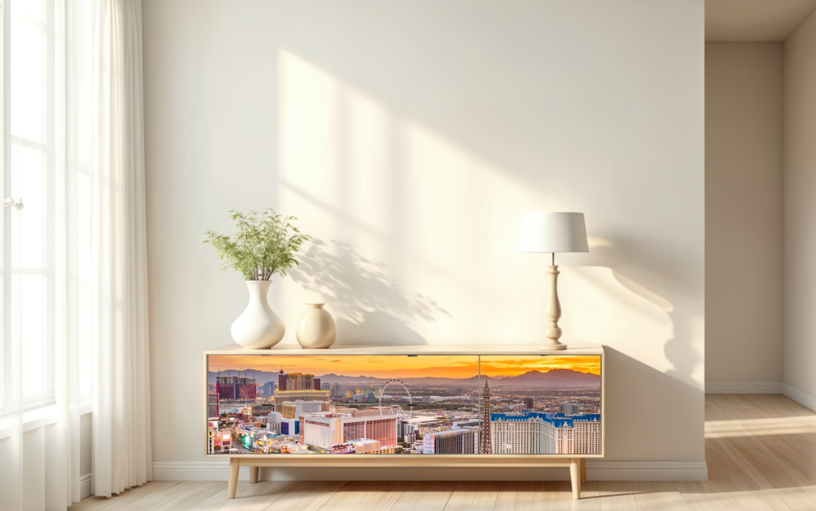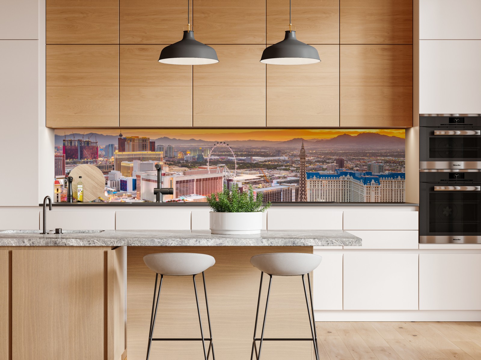 Repositionierbarer Aufkleber Las Vegas skyline bei sonnenuntergang