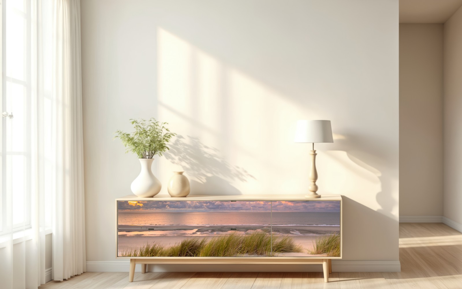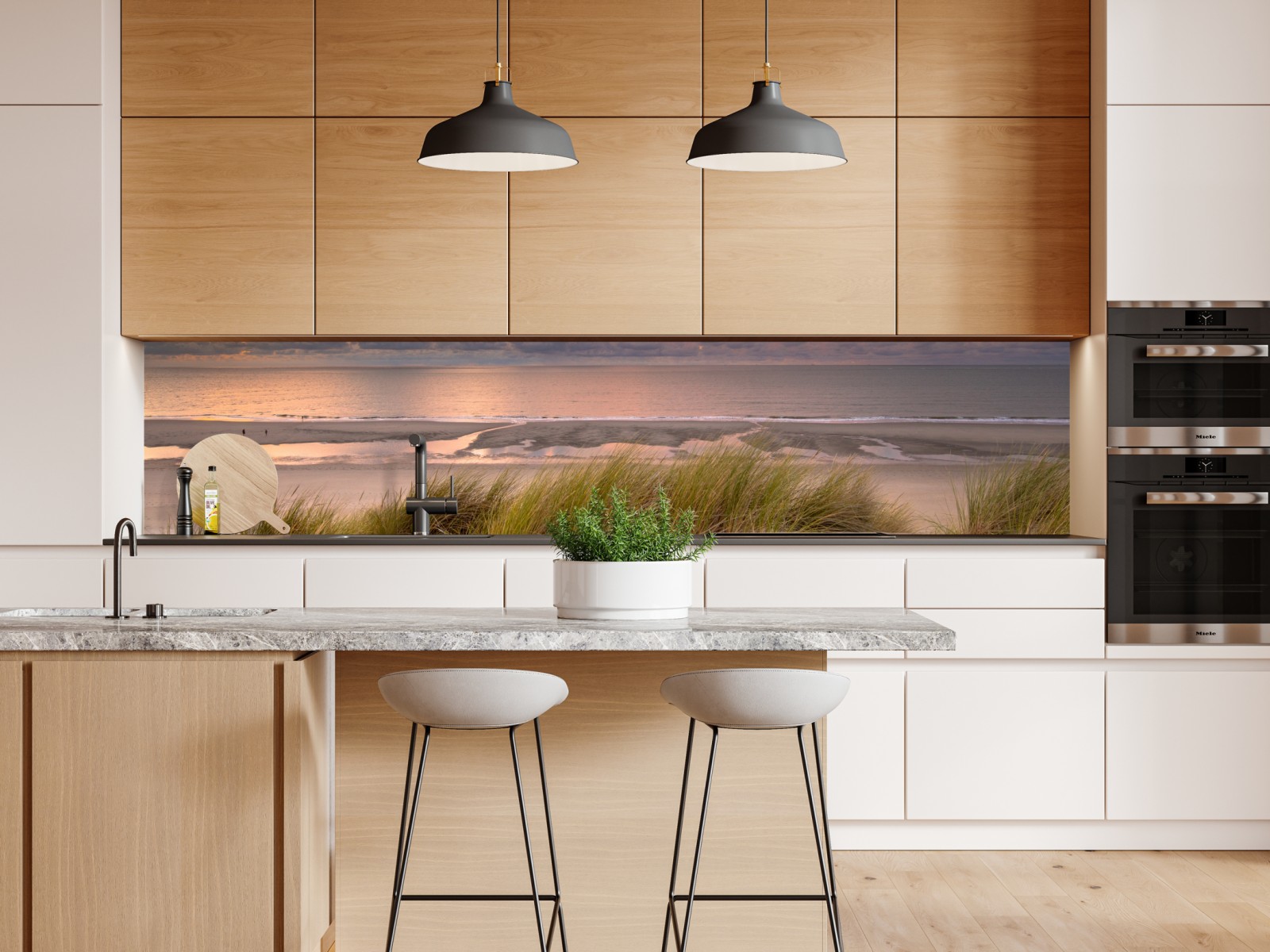 Repositionierbarer Aufkleber Sonnenuntergang über dünen in Zeeland