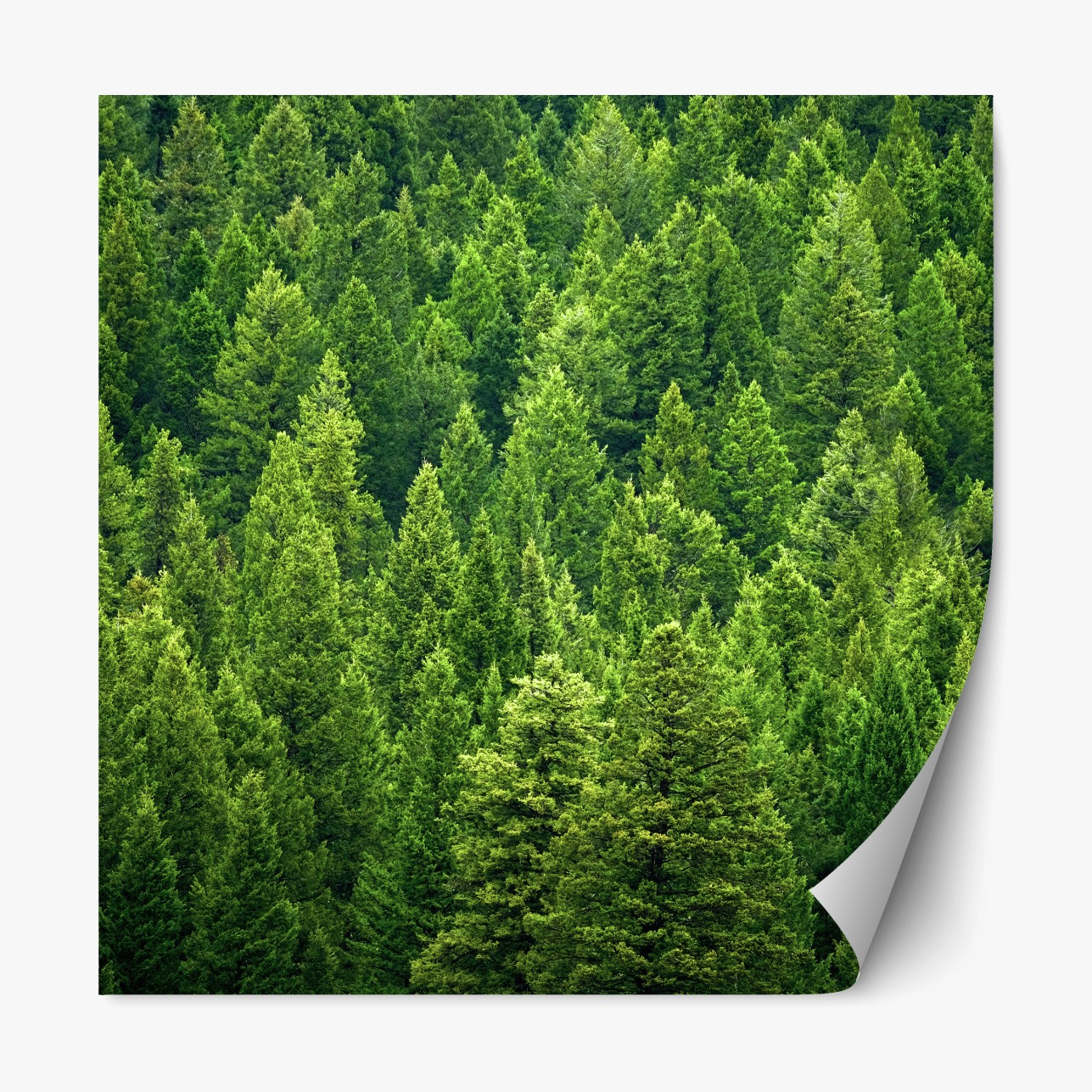 Repositionierbarer Aufkleber Üppige kronen eines kieferwaldes