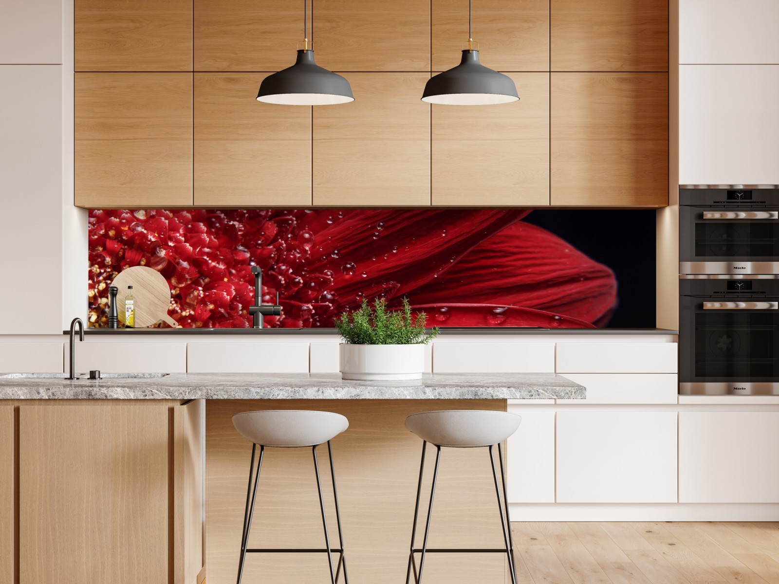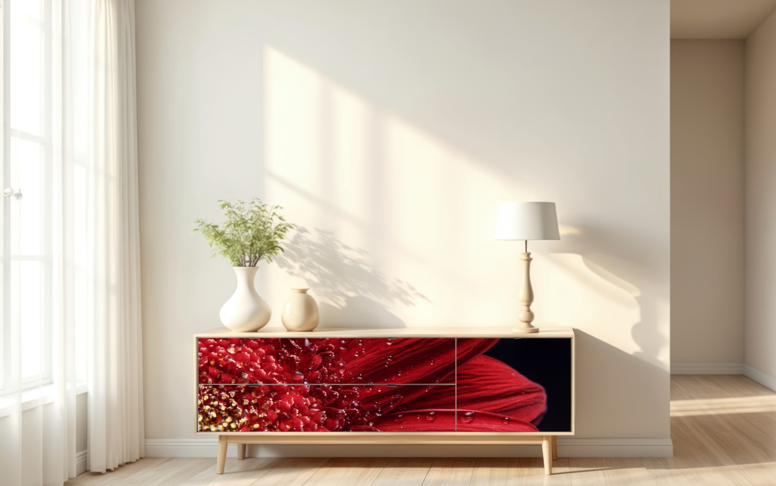 Repositionierbarer Aufkleber Rote gerbera makro mit wassertropfen