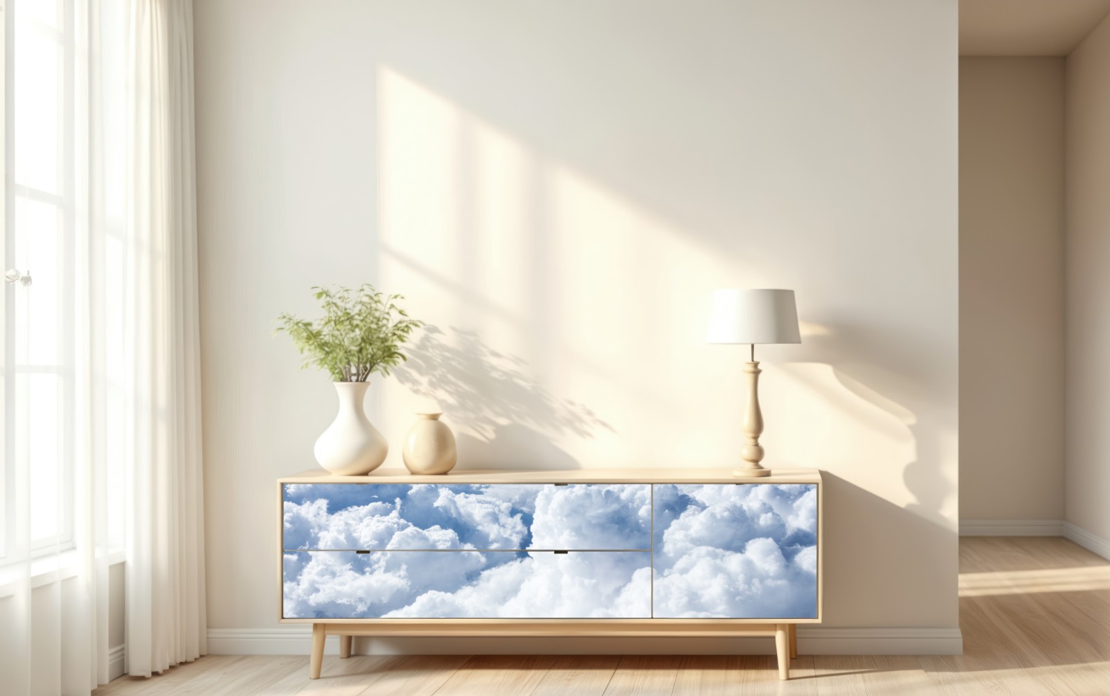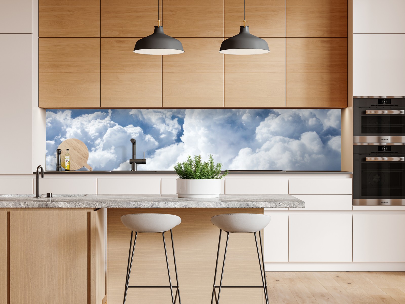 Repositionierbarer Aufkleber Blick von oben: sanfte wolken und blauer himmel
