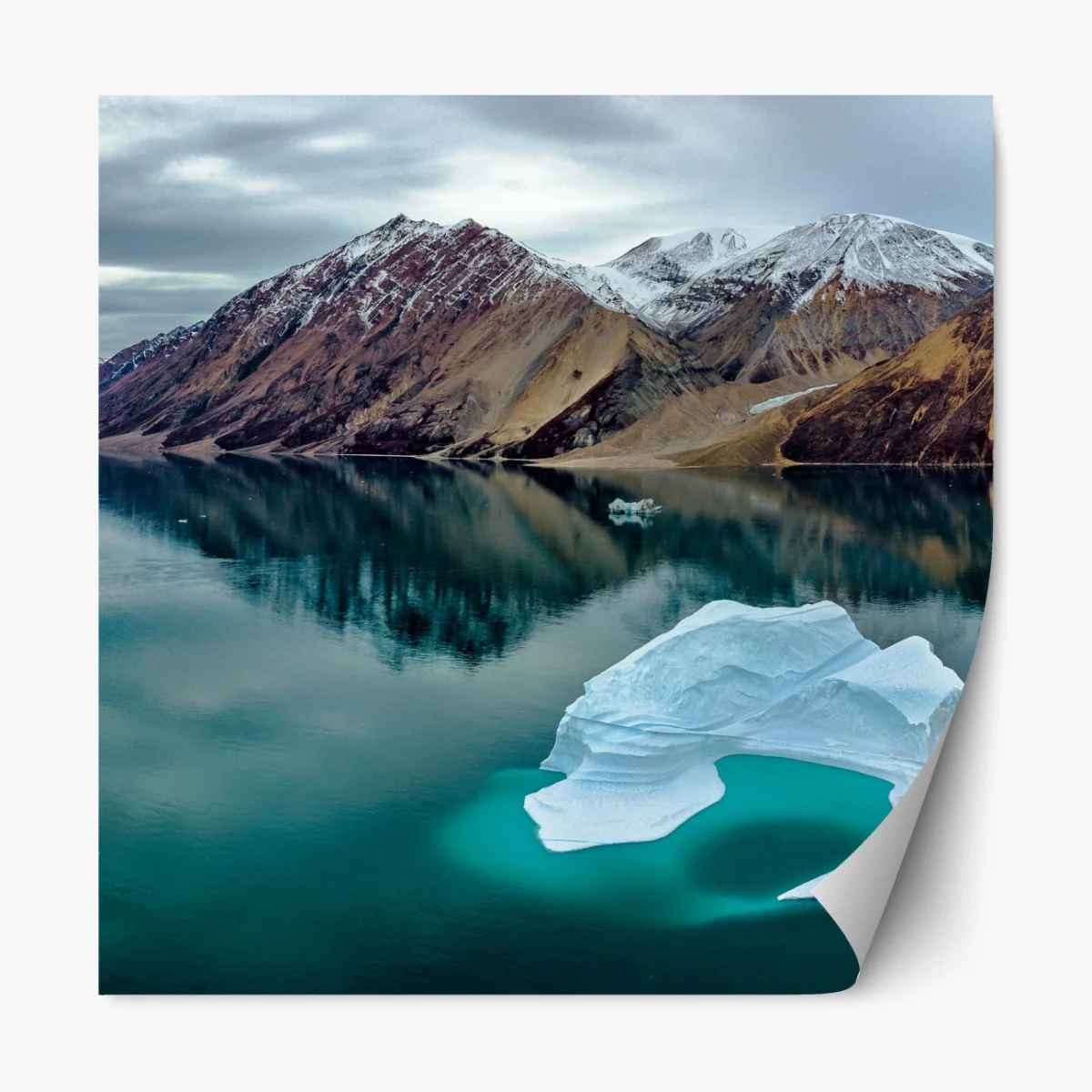 Repositionierbarer Aufkleber Eisberg und bergreflexionen in türkisfarbenem wasser