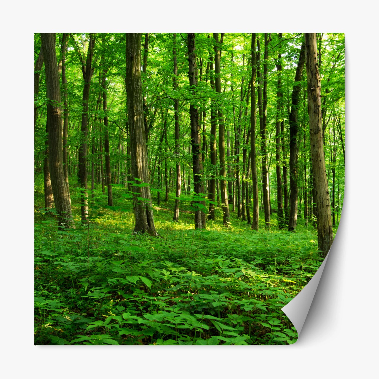 Repositionierbarer Aufkleber Sonniger grüner wald im frühling