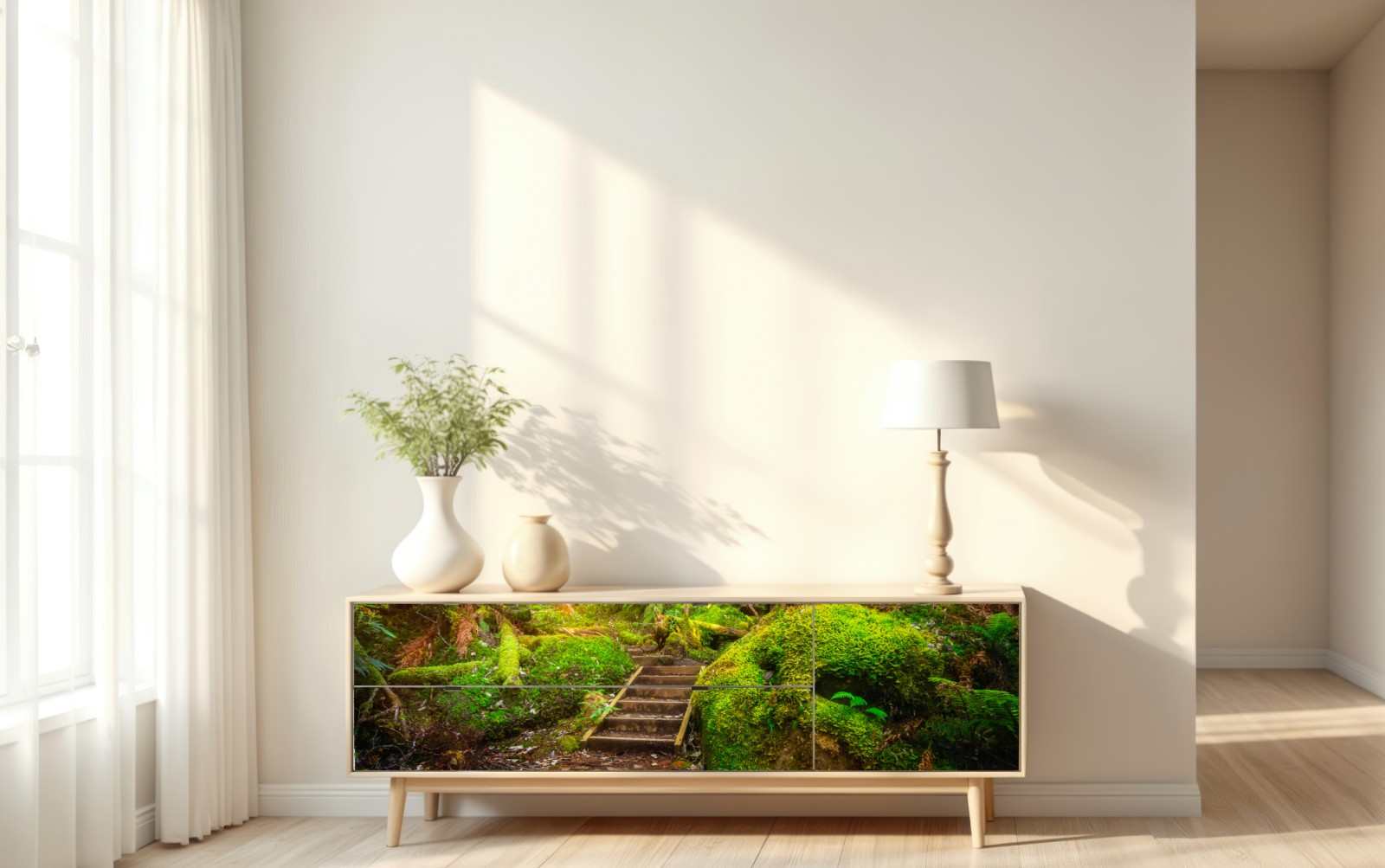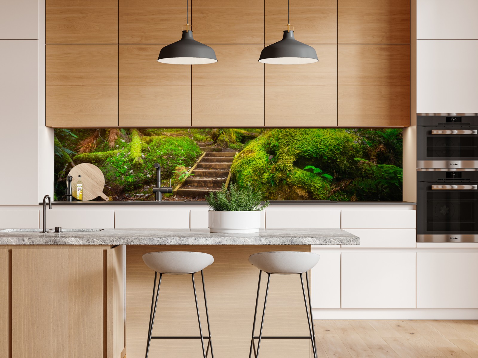 Repositionierbarer Aufkleber Moosiger regenwaldpfad auf der Tasman-Halbinsel
