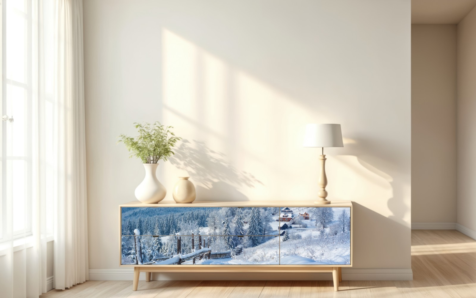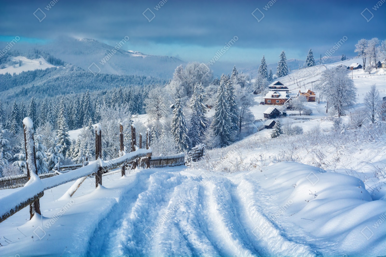 Repositionierbarer Aufkleber Winterweg zum alpendorf