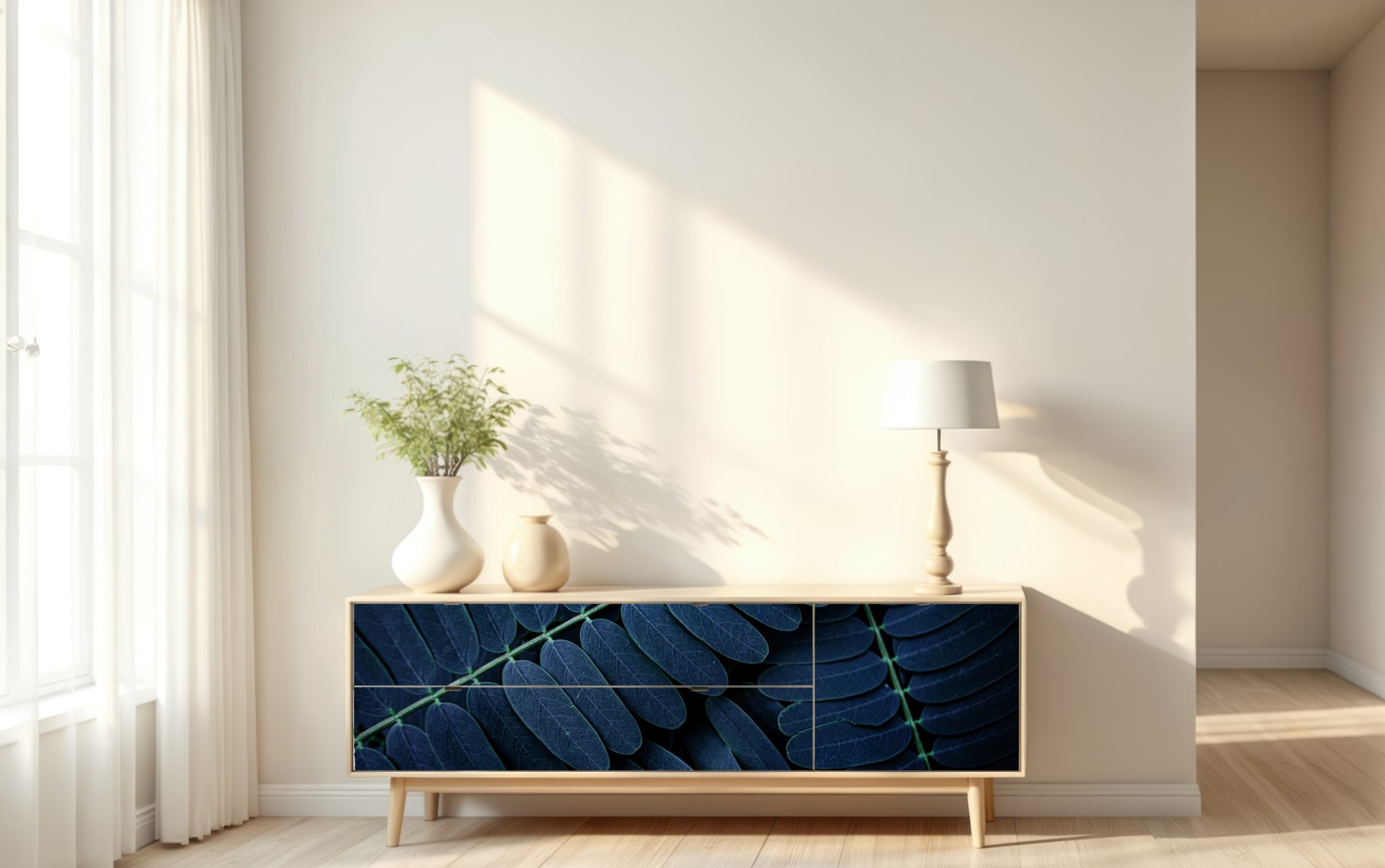Repositionierbarer Aufkleber Tiefblaues blattmuster