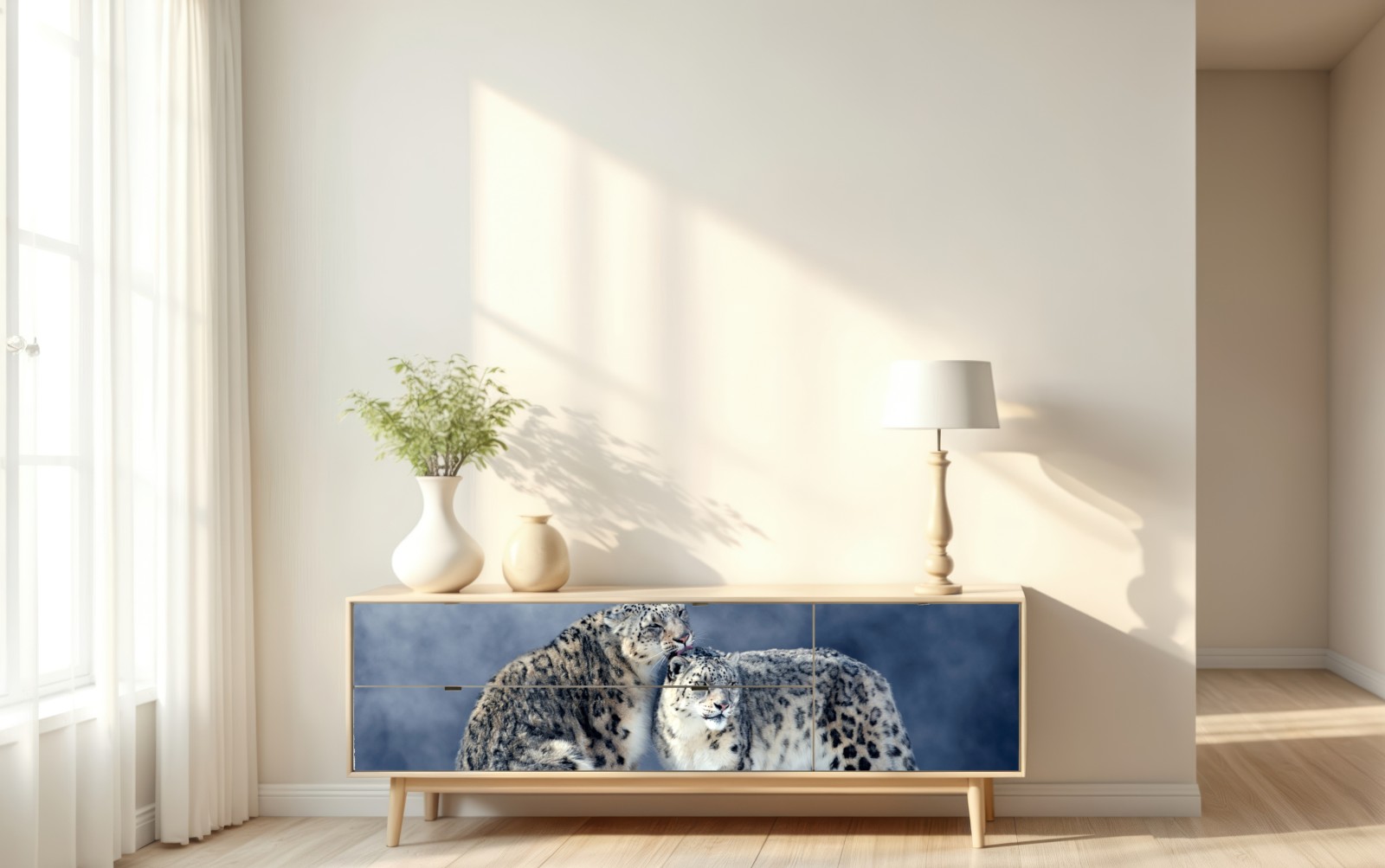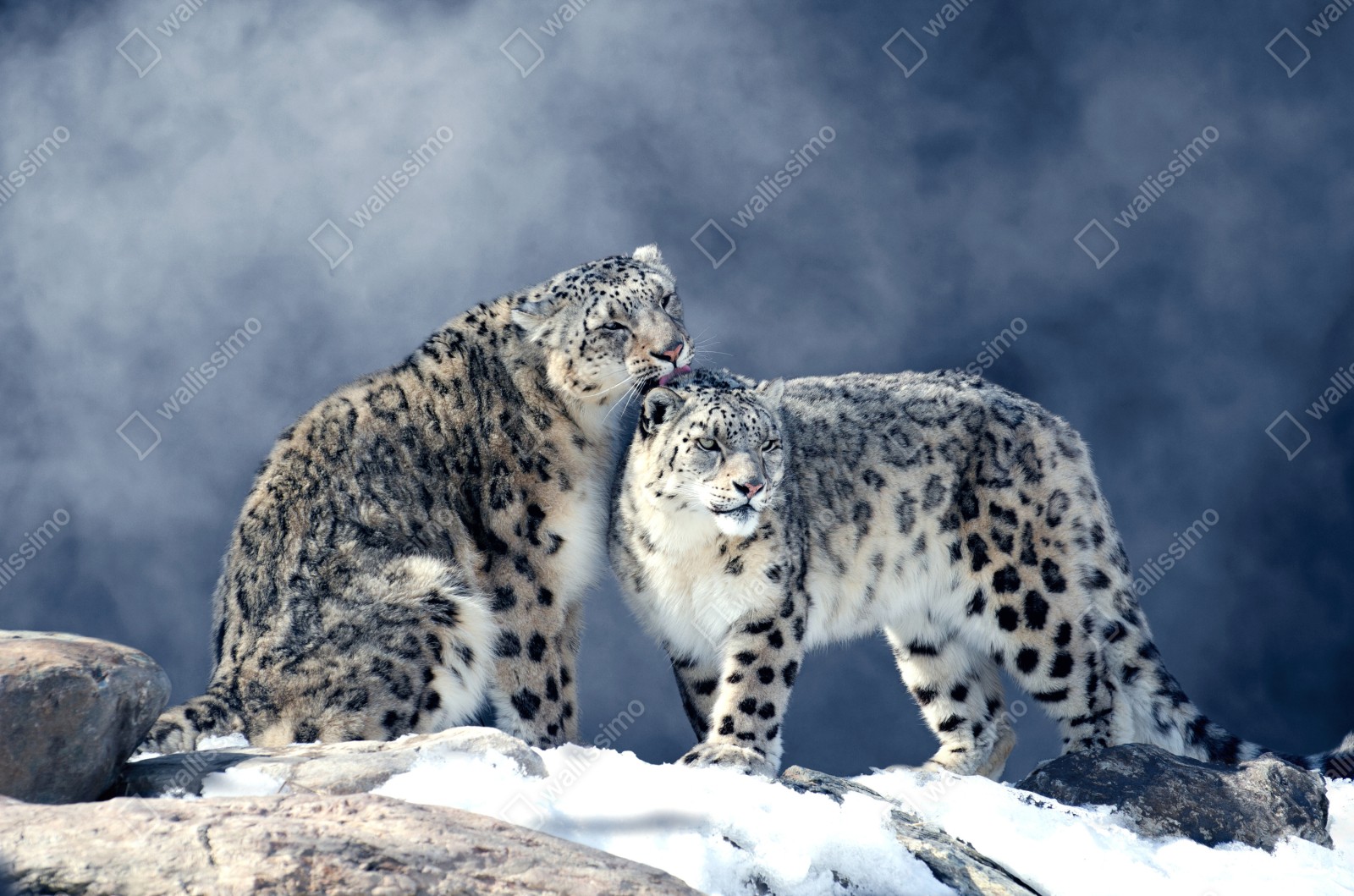 Repositionierbarer Aufkleber Majestätische schneeleoparden im winter