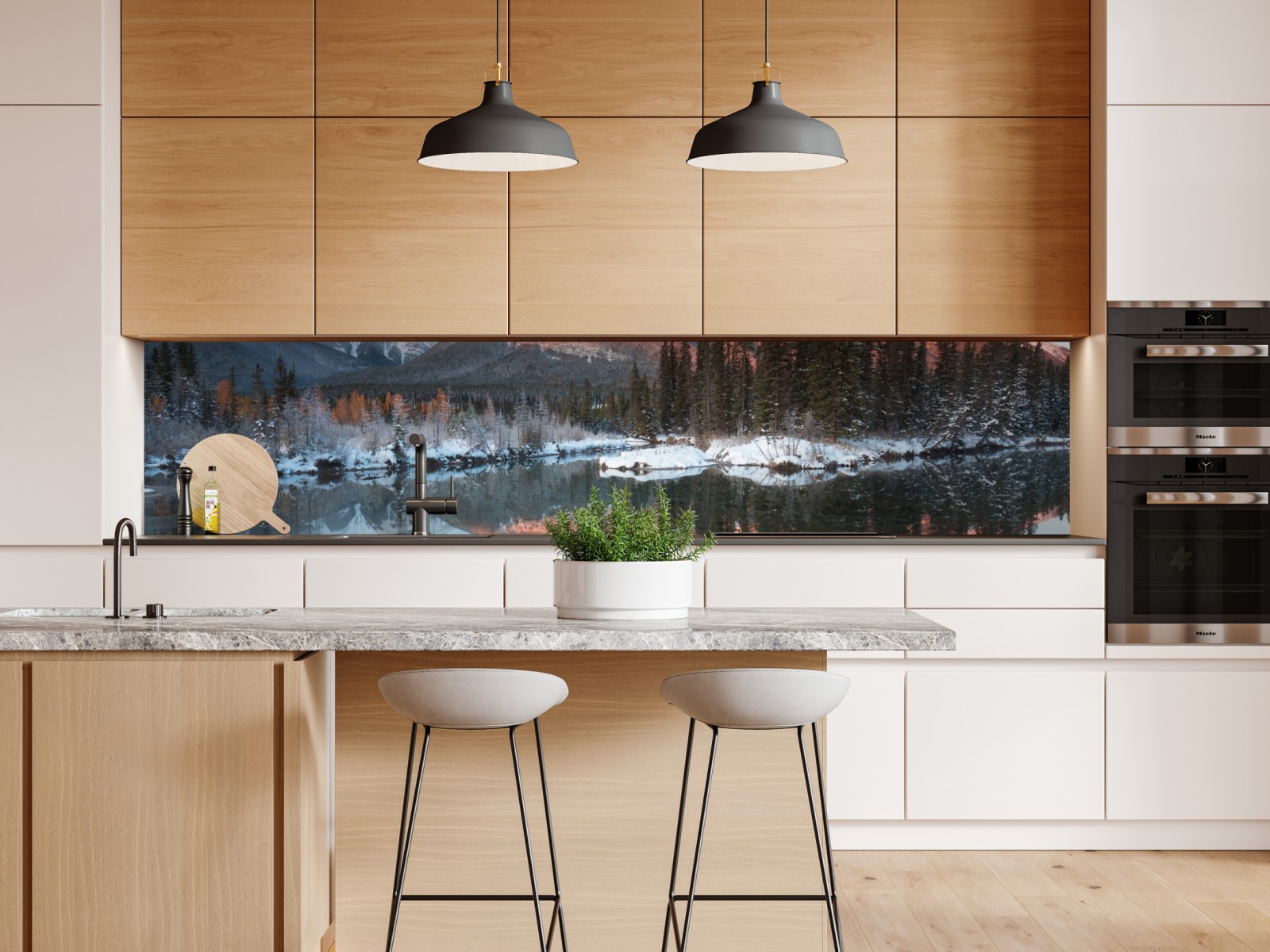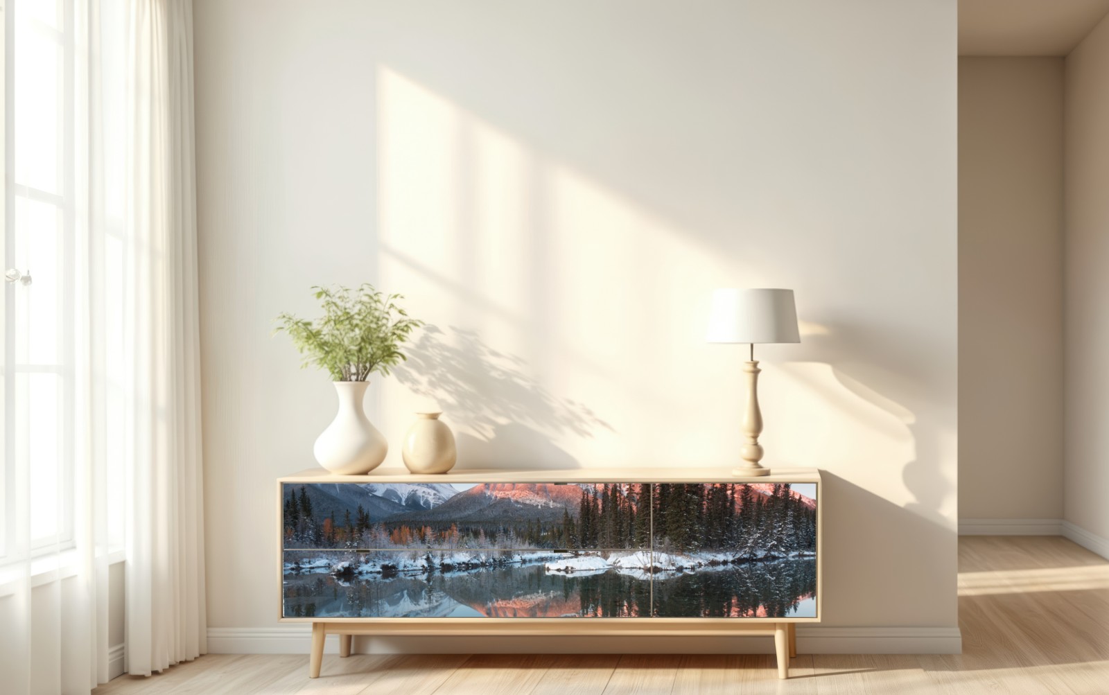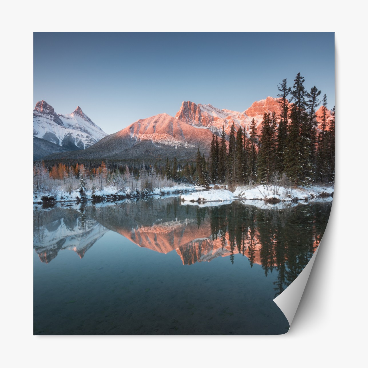 Repositionierbarer Aufkleber Bergspiegelung im morgendlichen glühen
