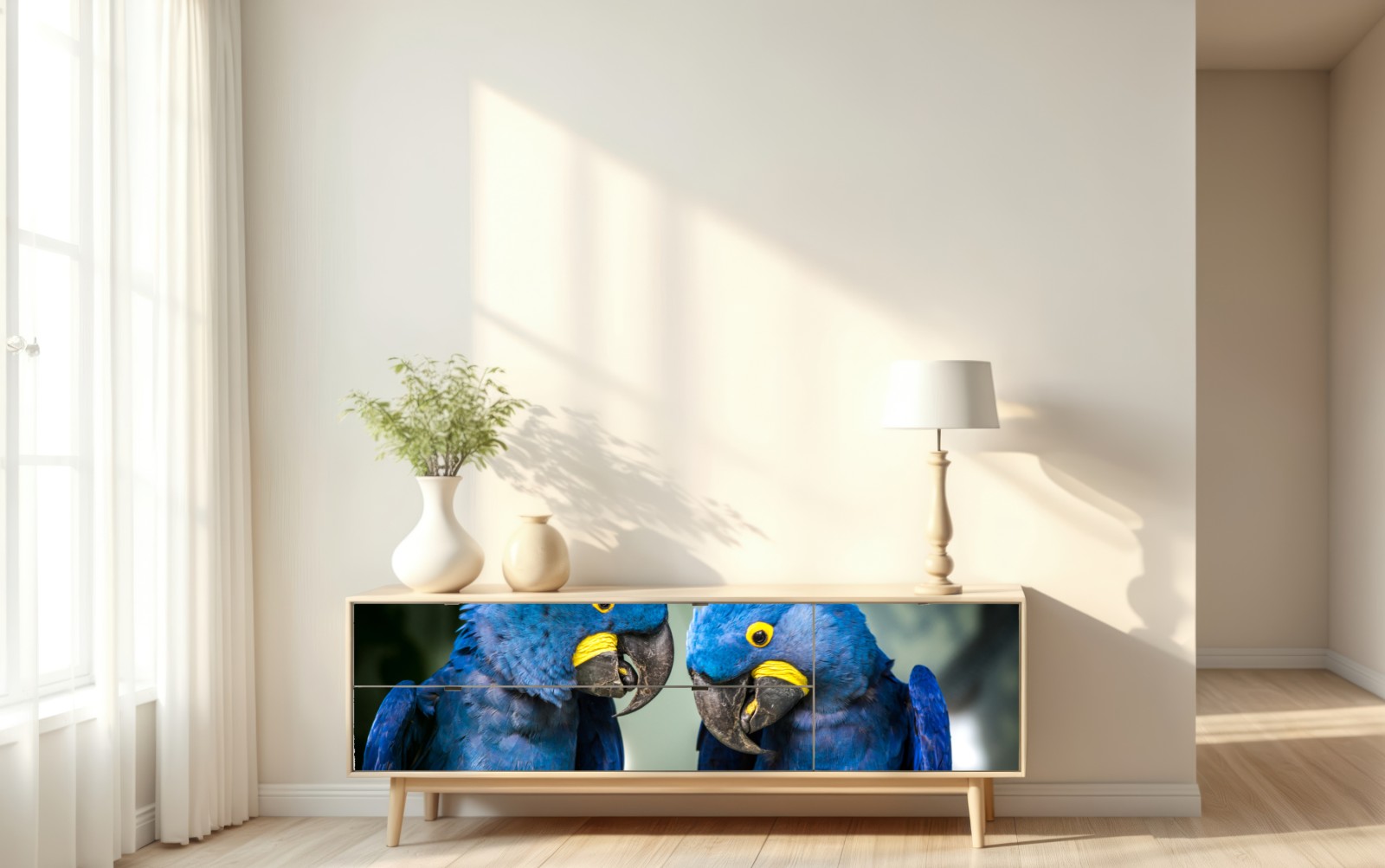 Repositionierbarer Aufkleber Paar blauer aras - nahaufnahme