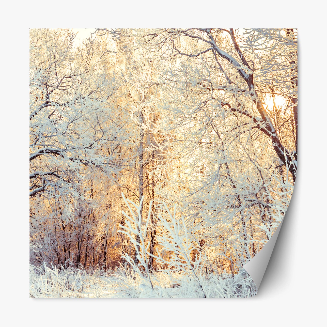 Repositionierbarer Aufkleber Wintersonne im verschneiten wald